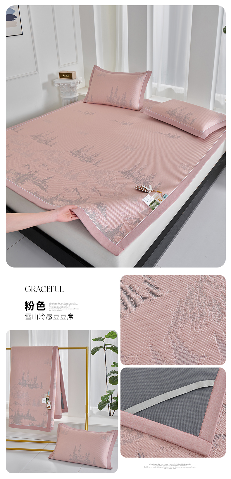 (总)2023新款超精密冰丝席-小斜纹系列-床笠款藤席凉席竹席,粉色,蓝色,绿色,银灰