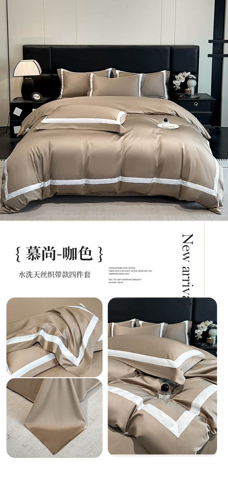 当前位置: 91家纺网 > 商品网购 > 床品套件 > 四件套 > 其它四件套 > 苏源家居 2026新款夏季酒店风水洗天丝织带款冰丝被套四件套-慕尚 慕尚-咖色