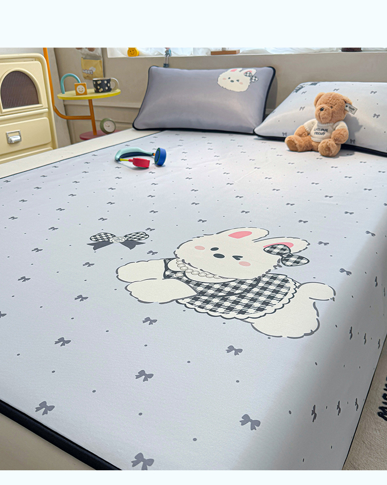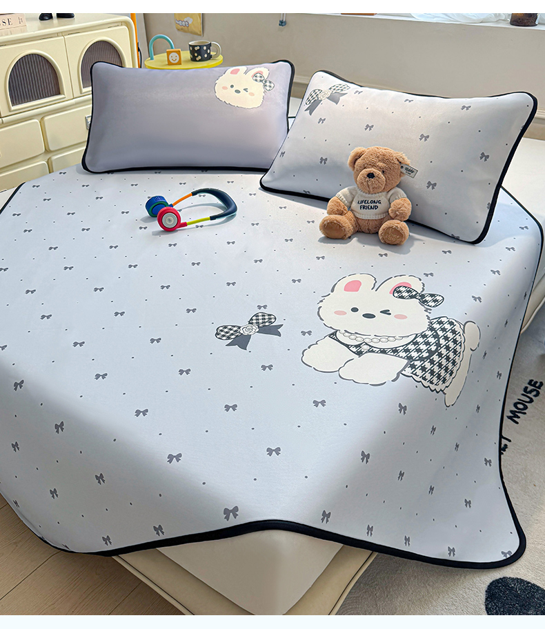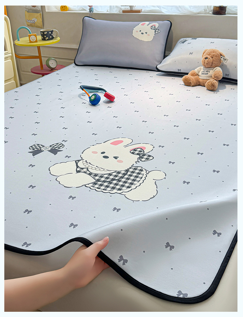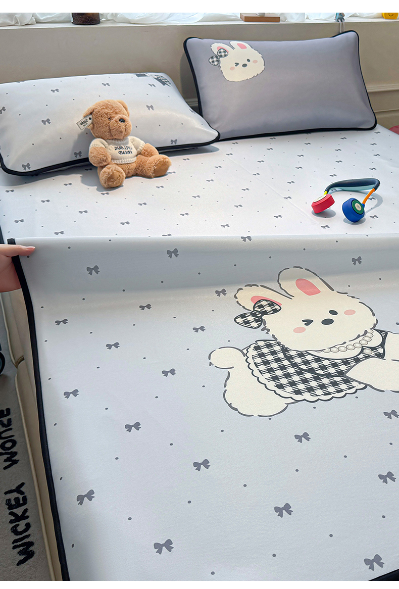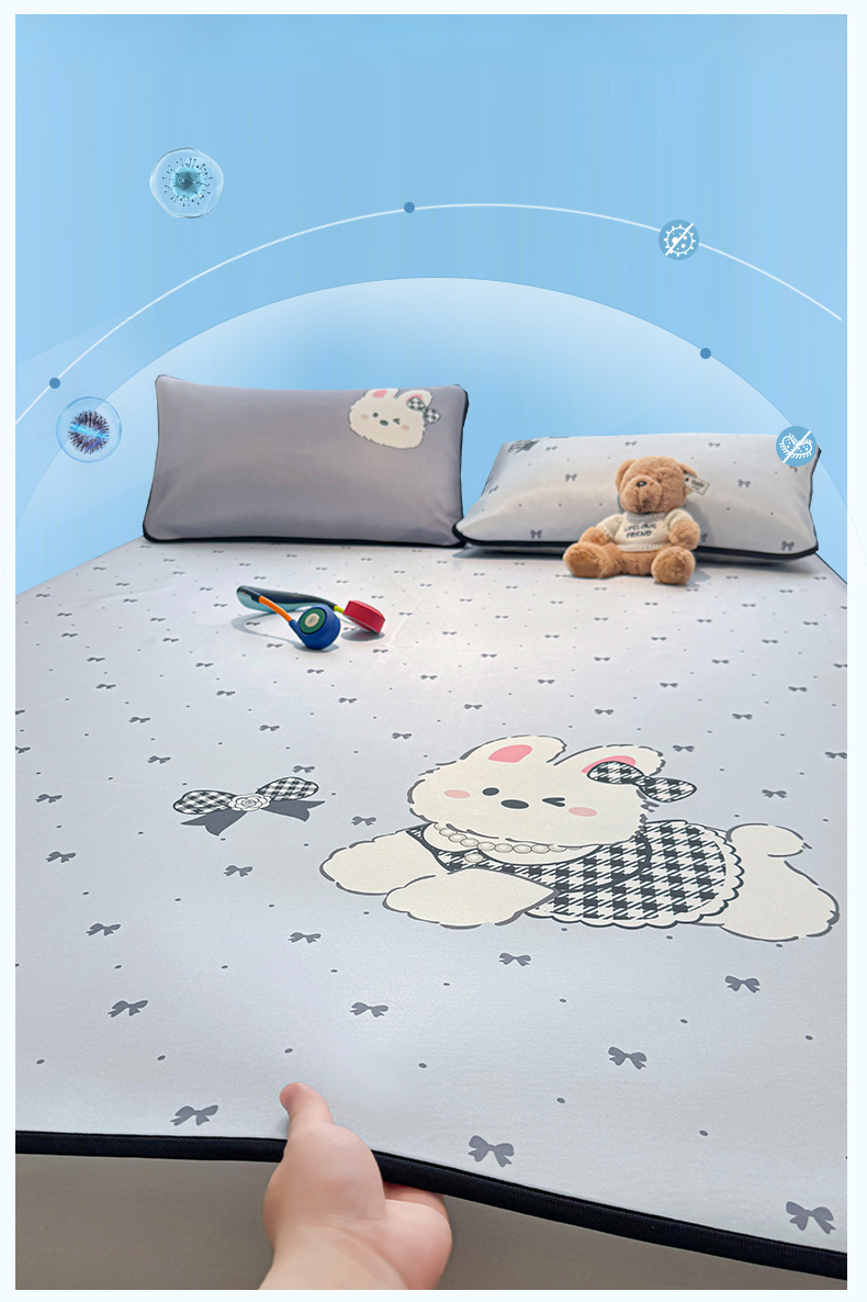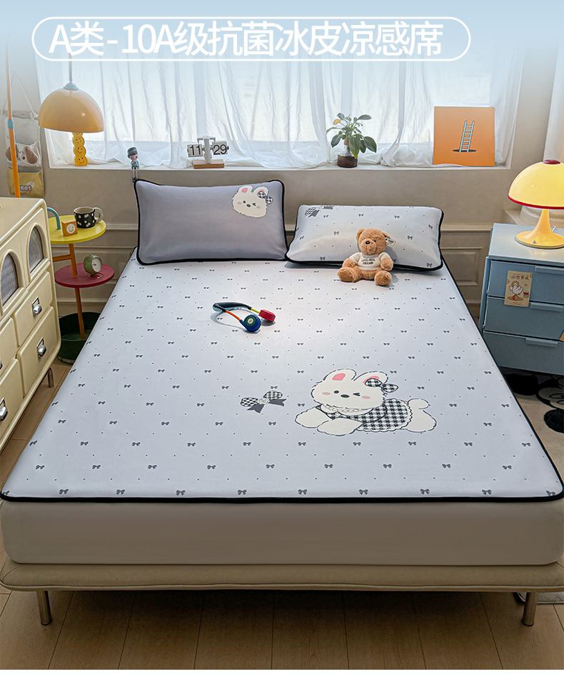 商品名称:雯豆家纺 【10A抗菌包检测】2026新款小冰皮卡通大版冰丝软席子凉席三件套凉感平铺款 小冰皮凉席-香香兔