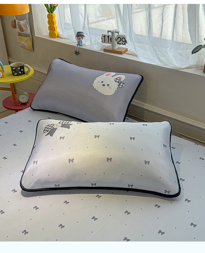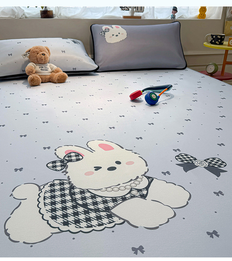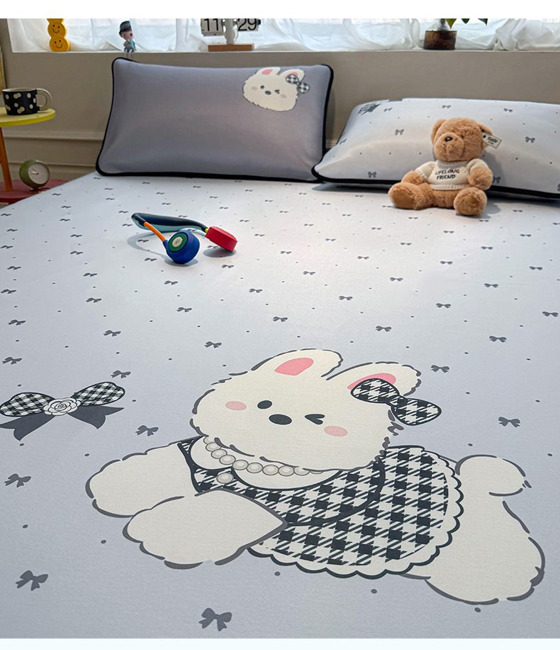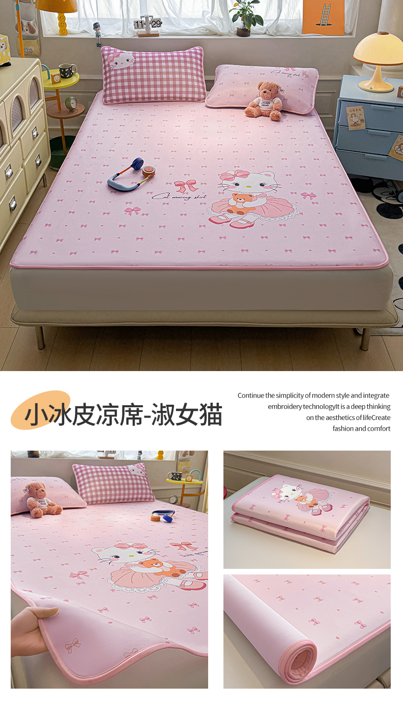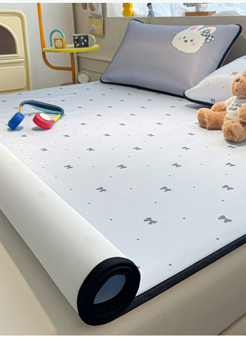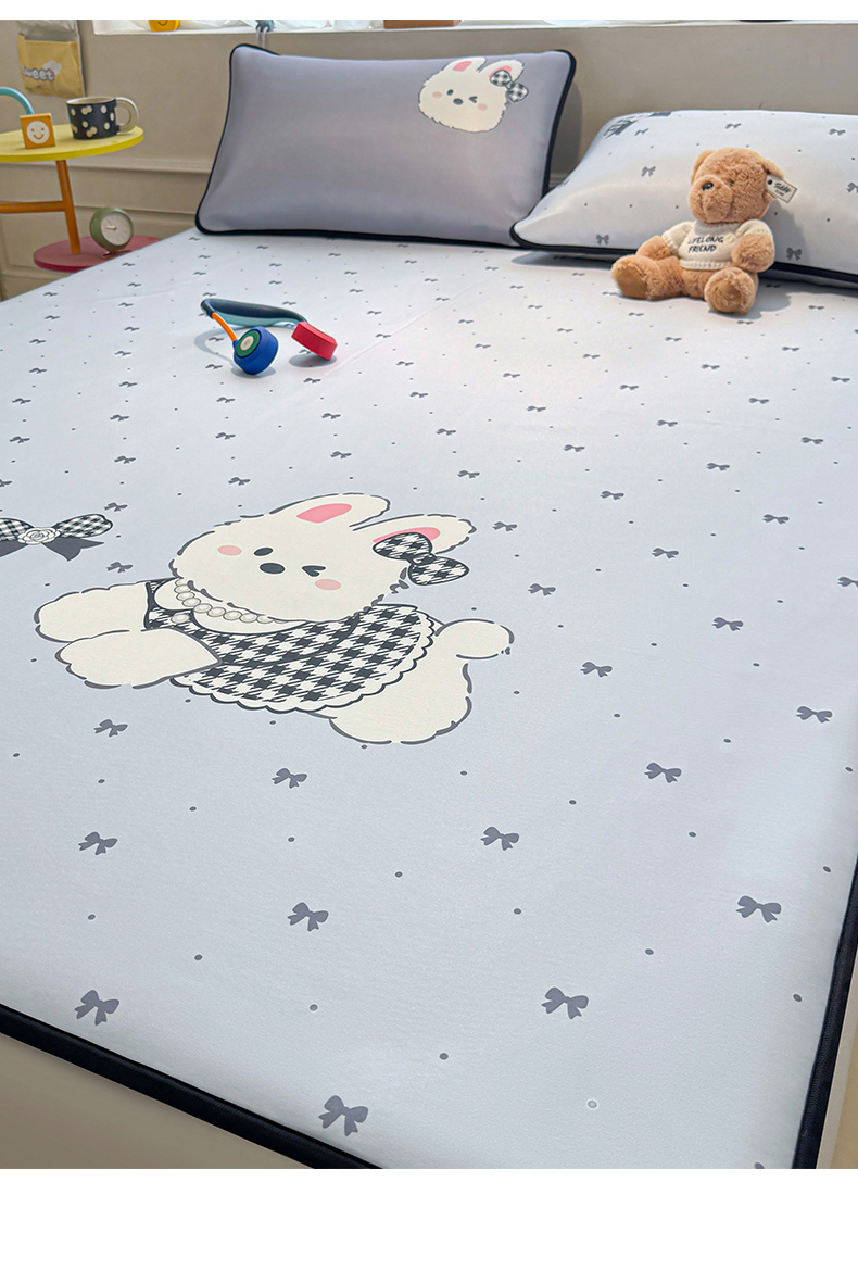 商品名称:雯豆家纺 【10A抗菌包检测】2026新款小冰皮卡通大版冰丝软席子凉席三件套凉感平铺款 小冰皮凉席-香香兔