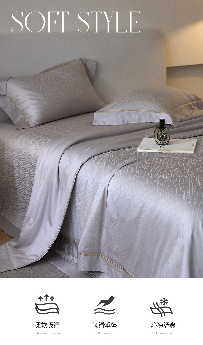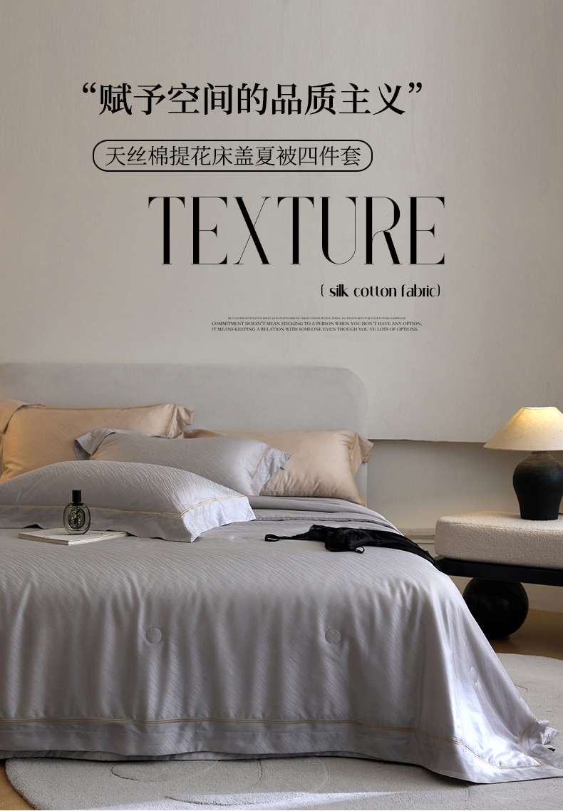 当前位置: 91家纺网 > 商品网购 > 床品套件 > 四件套 > 夏被四件套 > (总)淼铭家纺 2026新款天丝棉提花床盖夏被夏凉被空调被四件套-半夏系列