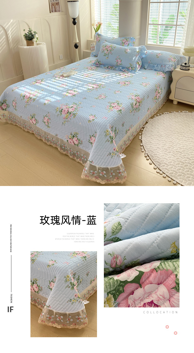 • 91家纺网 家纺一手货源 找家纺 欧妮家纺 2026新款全棉面料蕾丝花边夹棉绗缝床盖 全棉蕾丝款床盖-枫丹白露