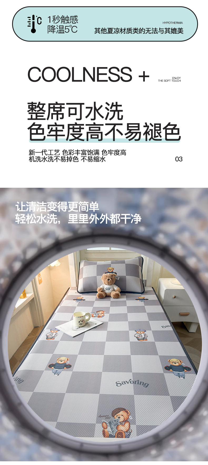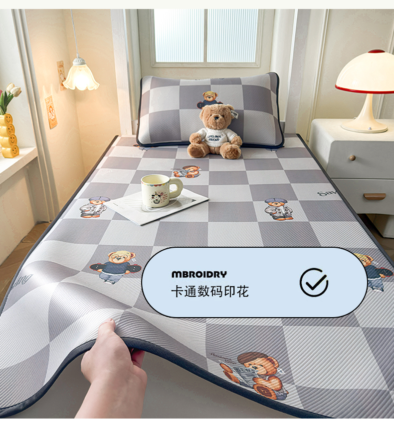 当前位置: 91家纺网 > 商品网购 > 床上用品 > 凉席 > 凉席套件 > 源舍家纺 2026新款泰迪爱兰系列(正版授权)A类三明治复合印花斜纹豆豆软凉席学生床 泰迪灰格