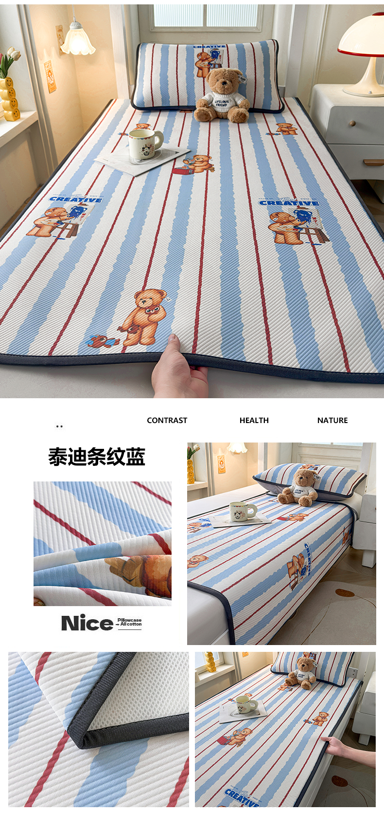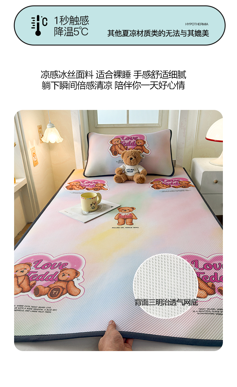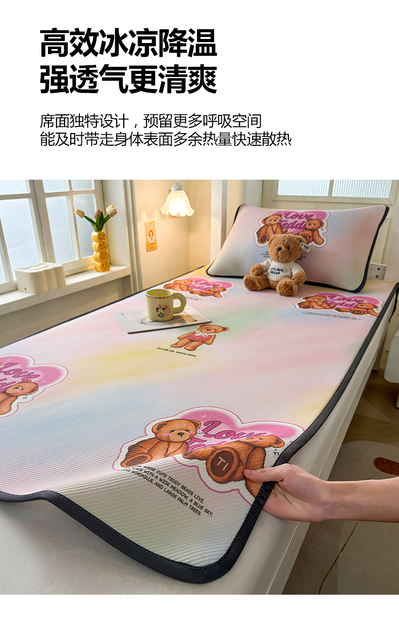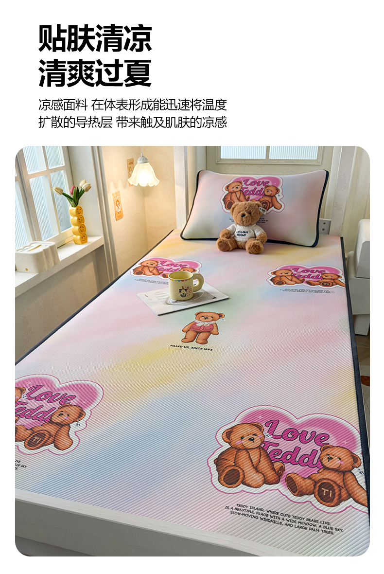 当前位置: 91家纺网 > 商品网购 > 床上用品 > 凉席 > 凉席套件 > 源舍家纺 2026新款泰迪爱兰系列(正版授权)A类三明治复合印花斜纹豆豆软凉席学生床 泰迪炫彩