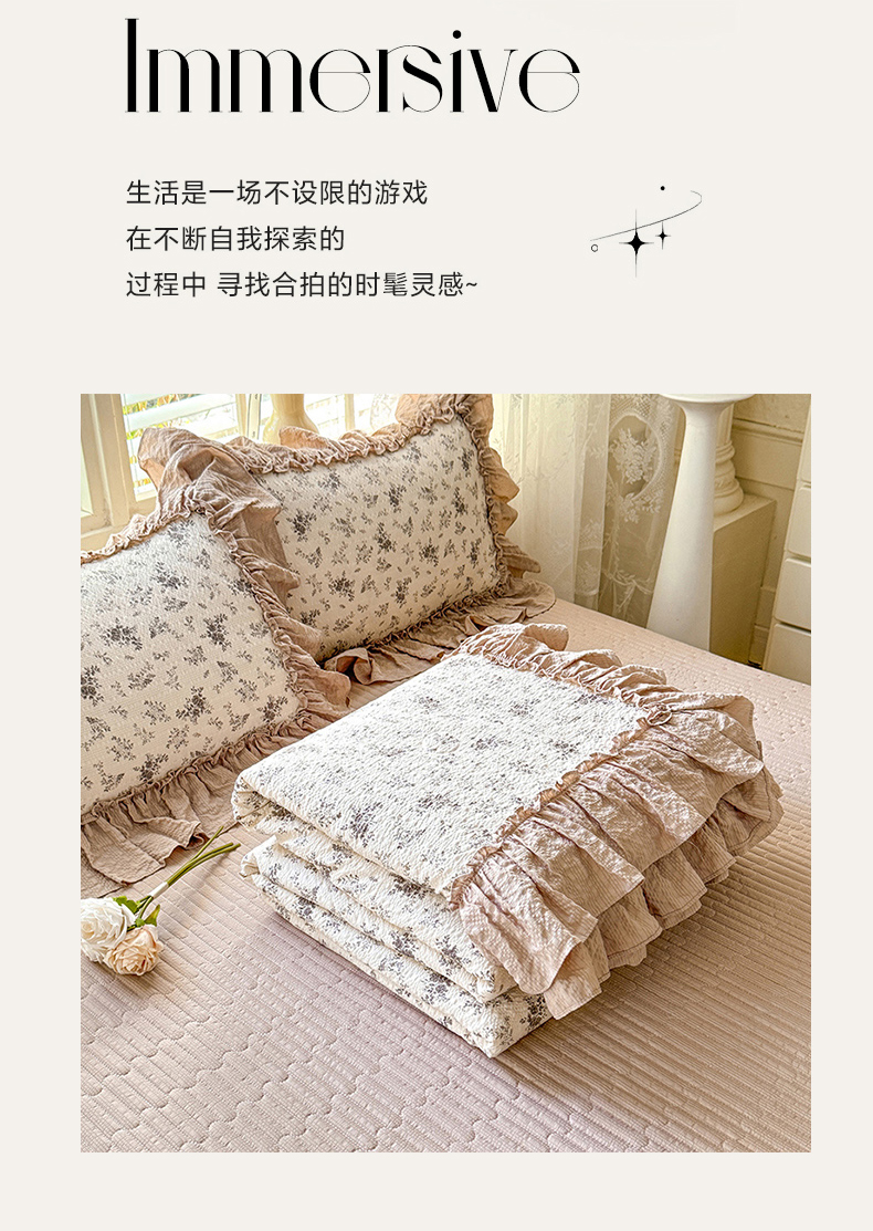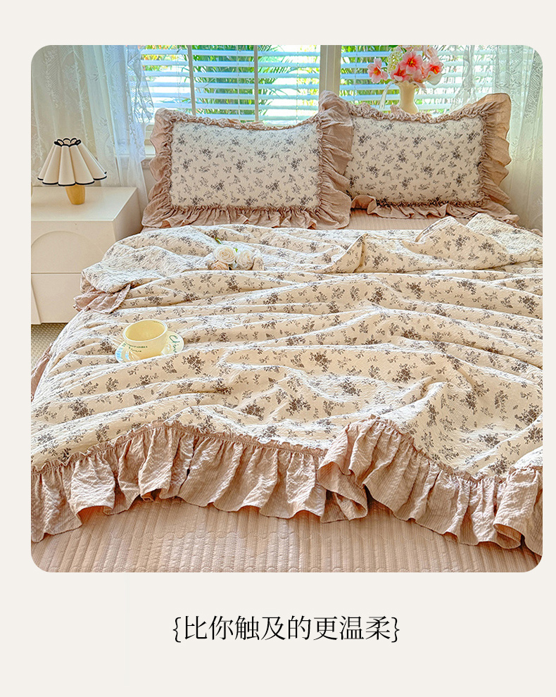 商品名称:韩约家纺 2026新款法式大花边床盖款泡芙棉夏凉被空调被四件套 春旭