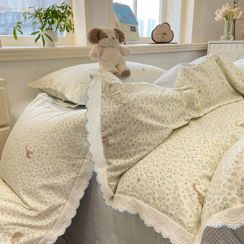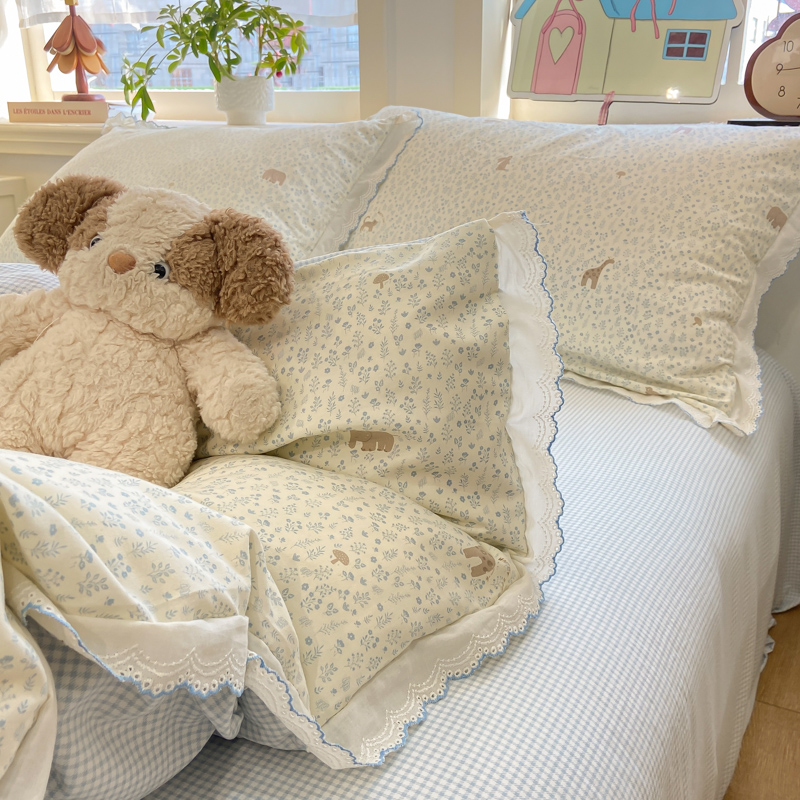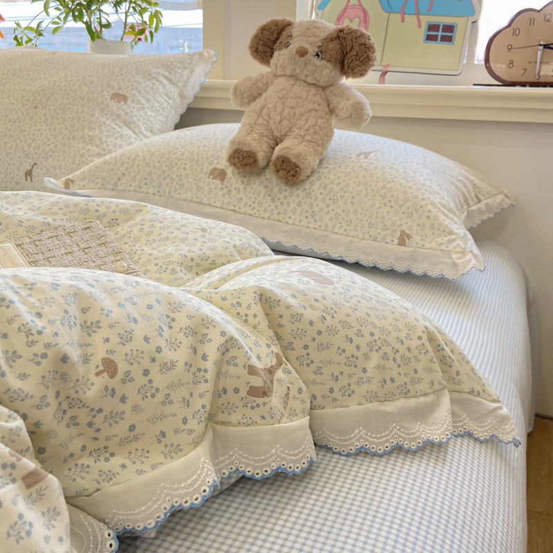 (总)漫仙阁家纺 2025新品云朵棉可爱风卡通烫画单床笠枕套三件套,小浣熊,邻家女孩,小青蛙,兔小姐,花仙子,狗狗家族