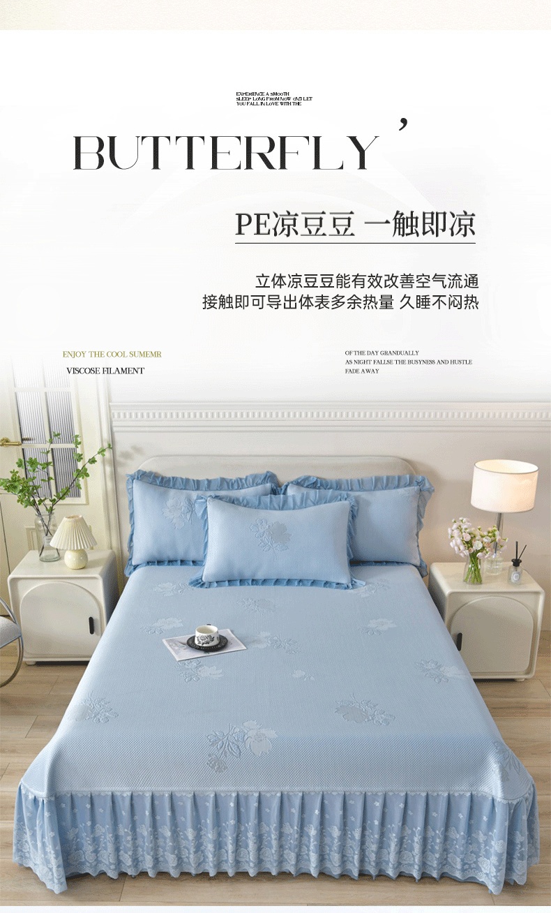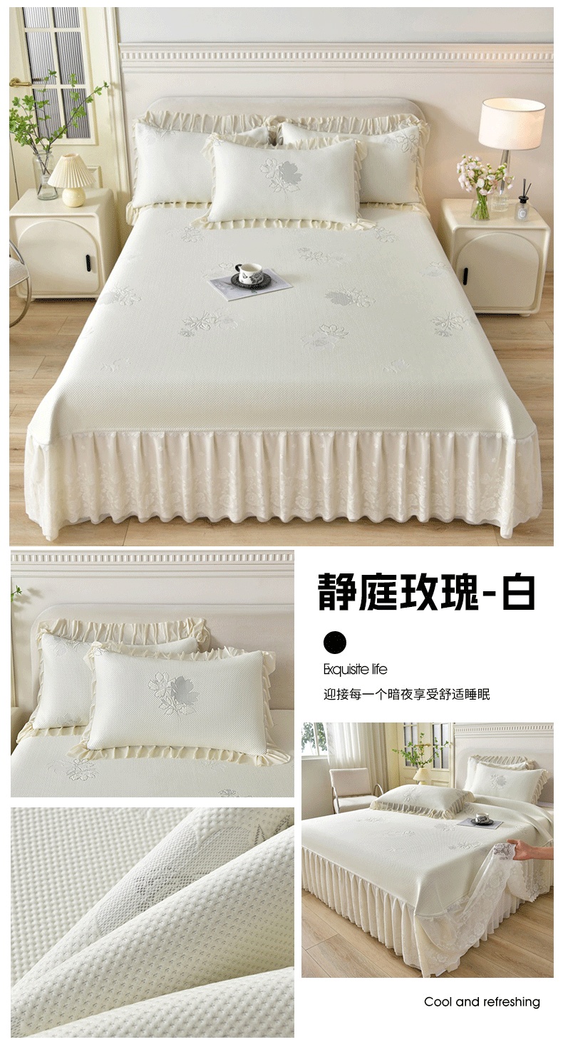 商品名称:(总)绒耀家纺 直播新款加厚复合冰豆豆PE高分子凉感丝双面提花凉席三件套双层花边(控价最低139起)