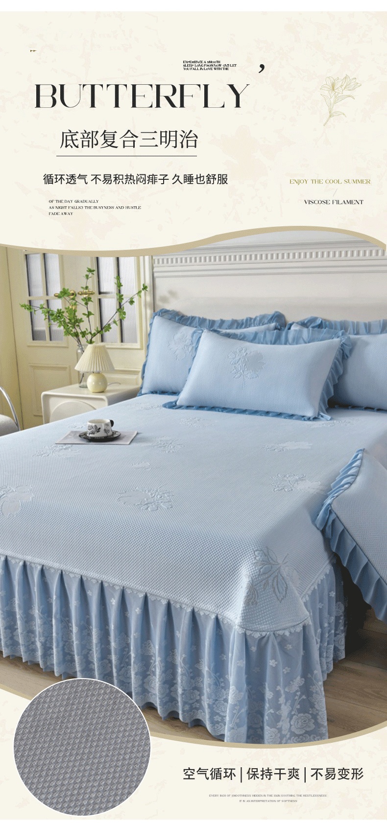 200*220凉席床裙三件套