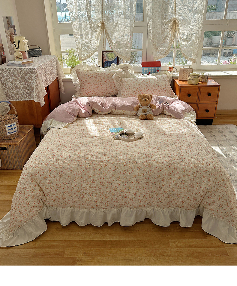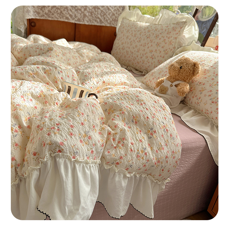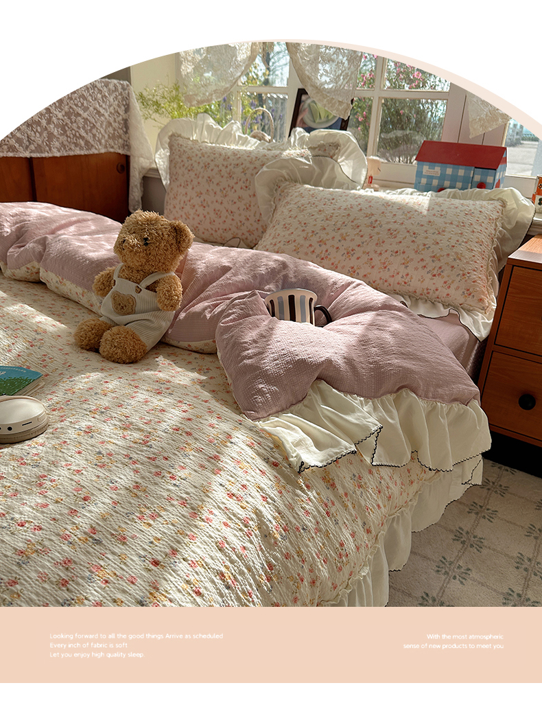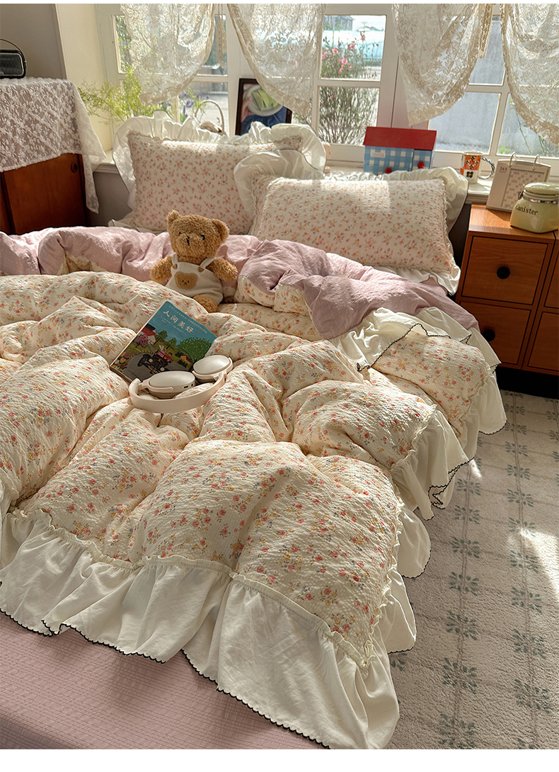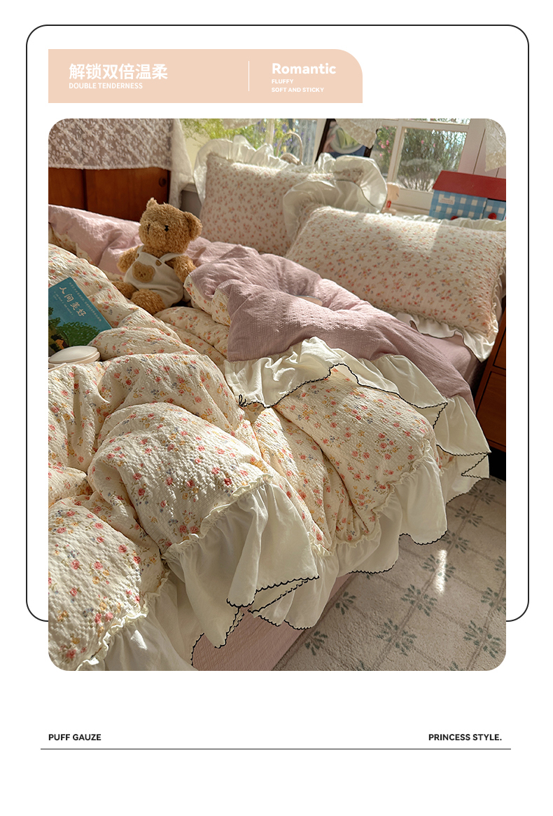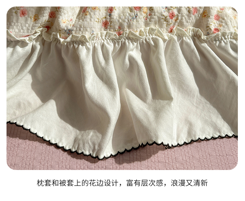 当前位置: 91家纺网 > 商品网购 > 床品套件 > 四件套 > 化纤普通四件套 > 凯洛奇 2026新款公主风云感泡芙纱花边款四件套 浅花谣