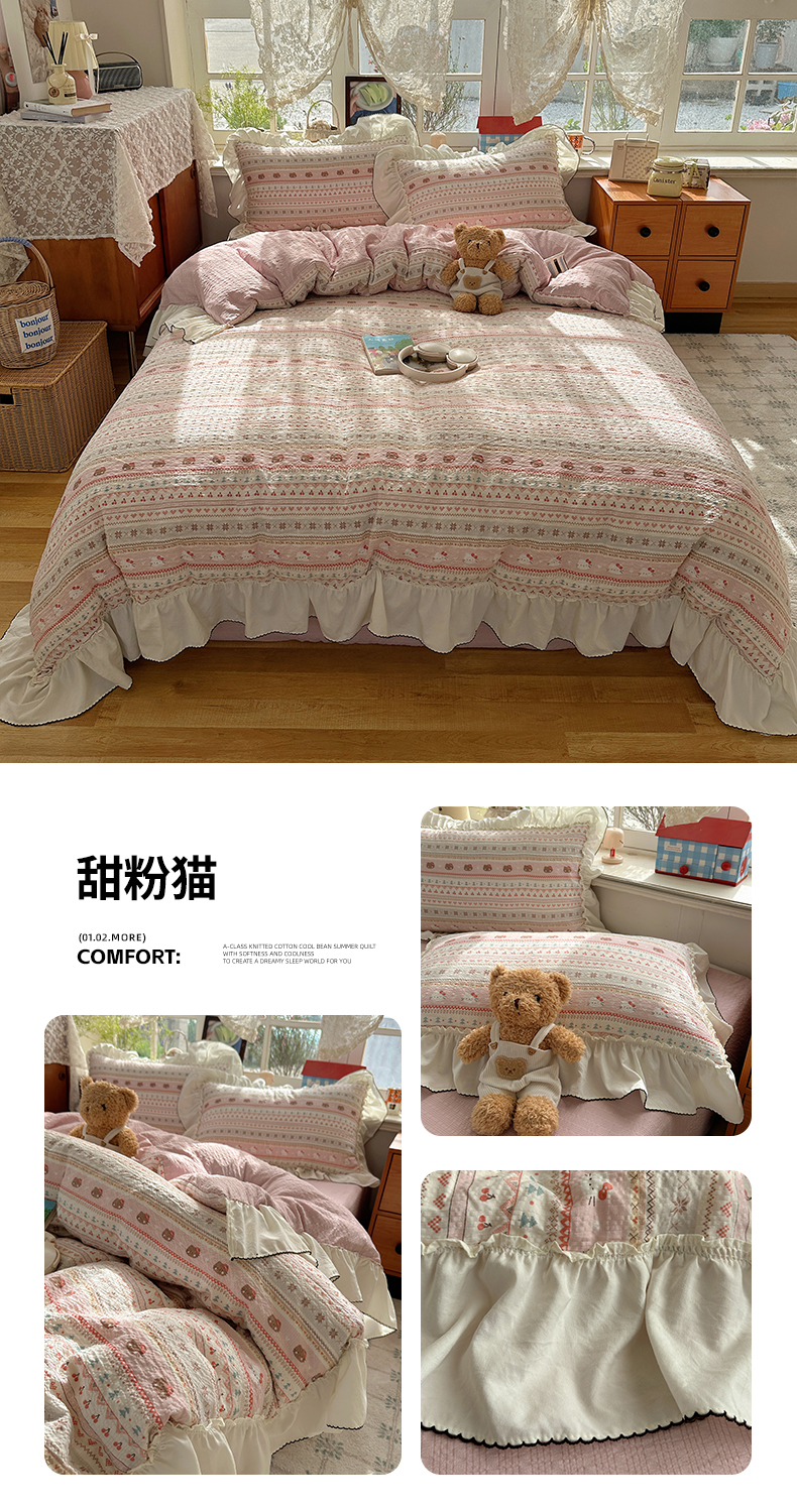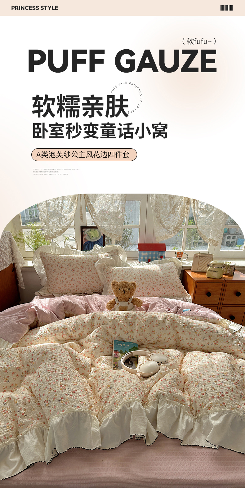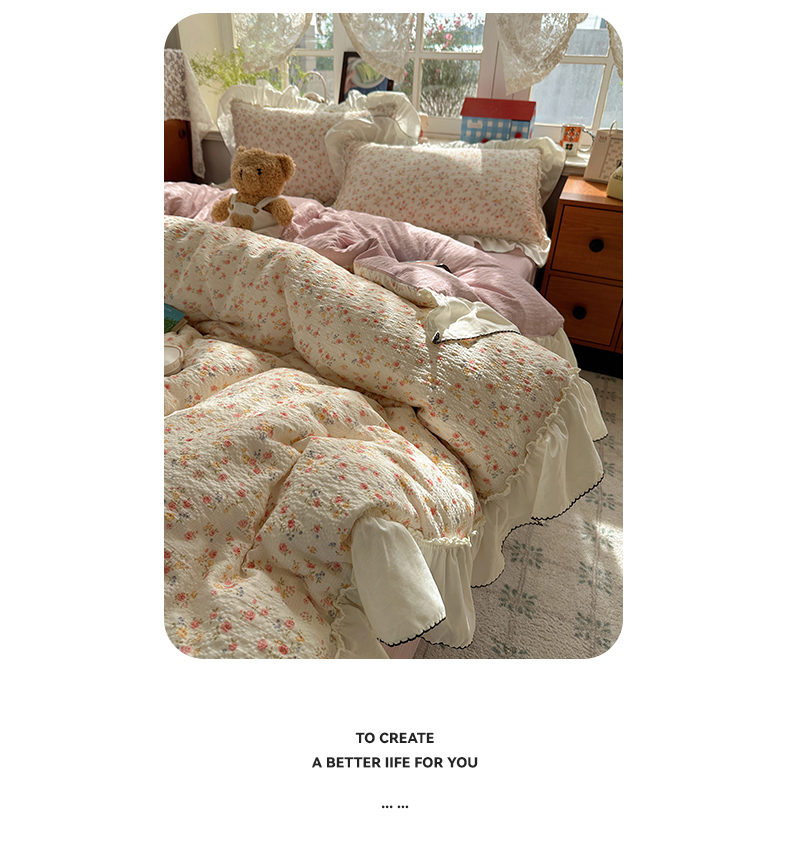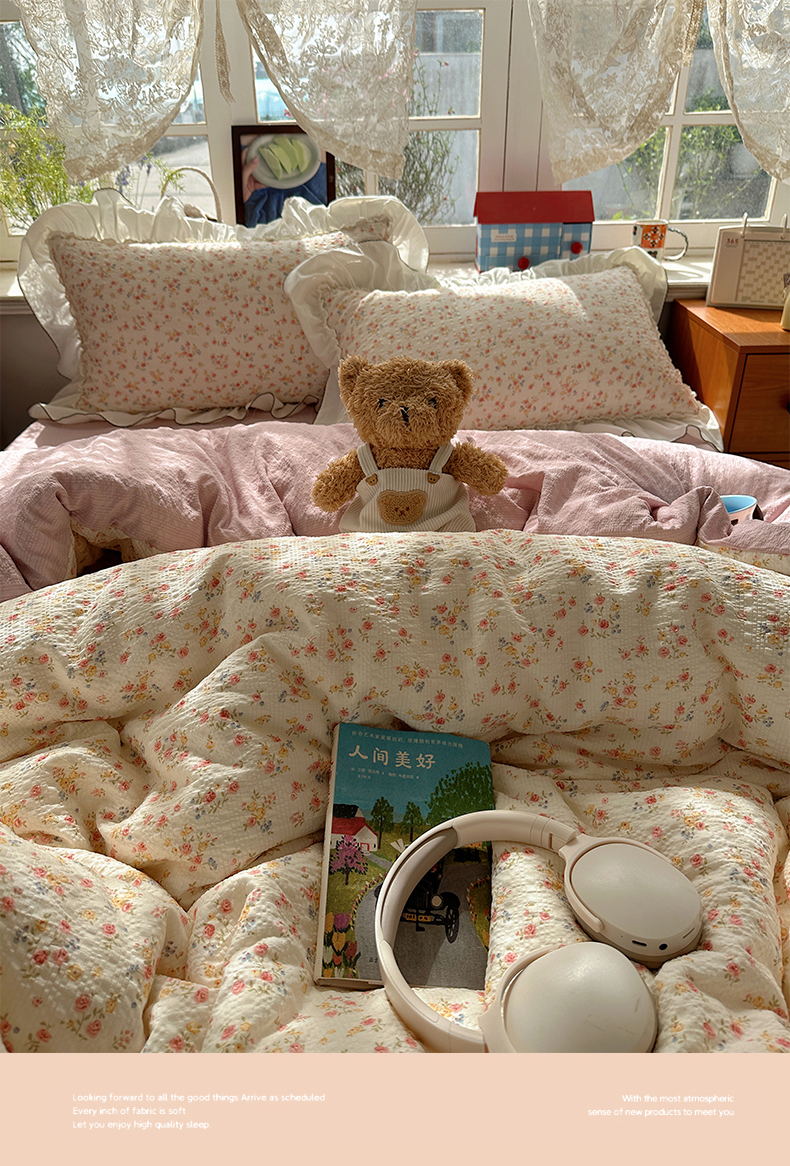 当前位置: 91家纺网 > 商品网购 > 床品套件 > 四件套 > 化纤普通四件套 > 凯洛奇 2026新款公主风云感泡芙纱花边款四件套 浅花谣