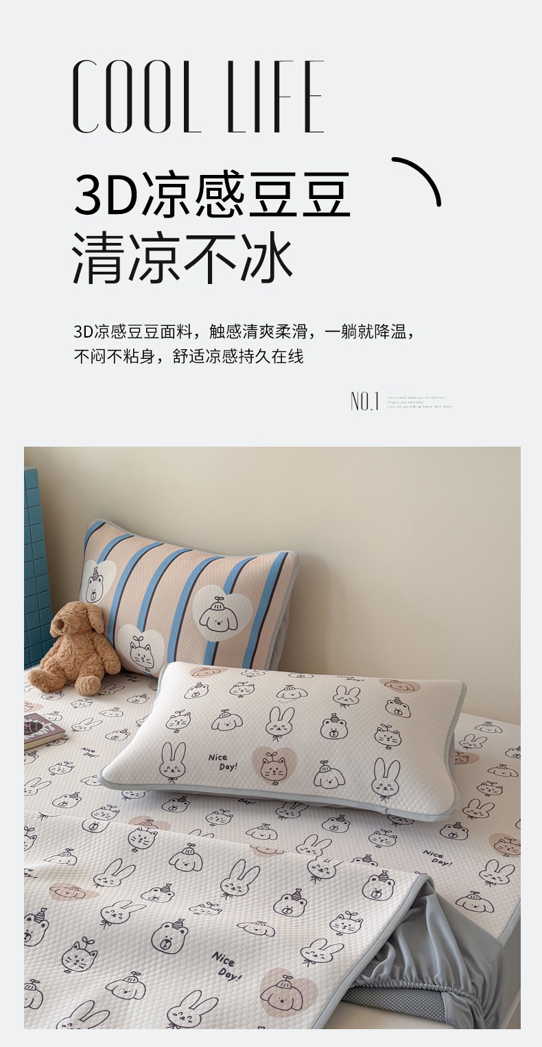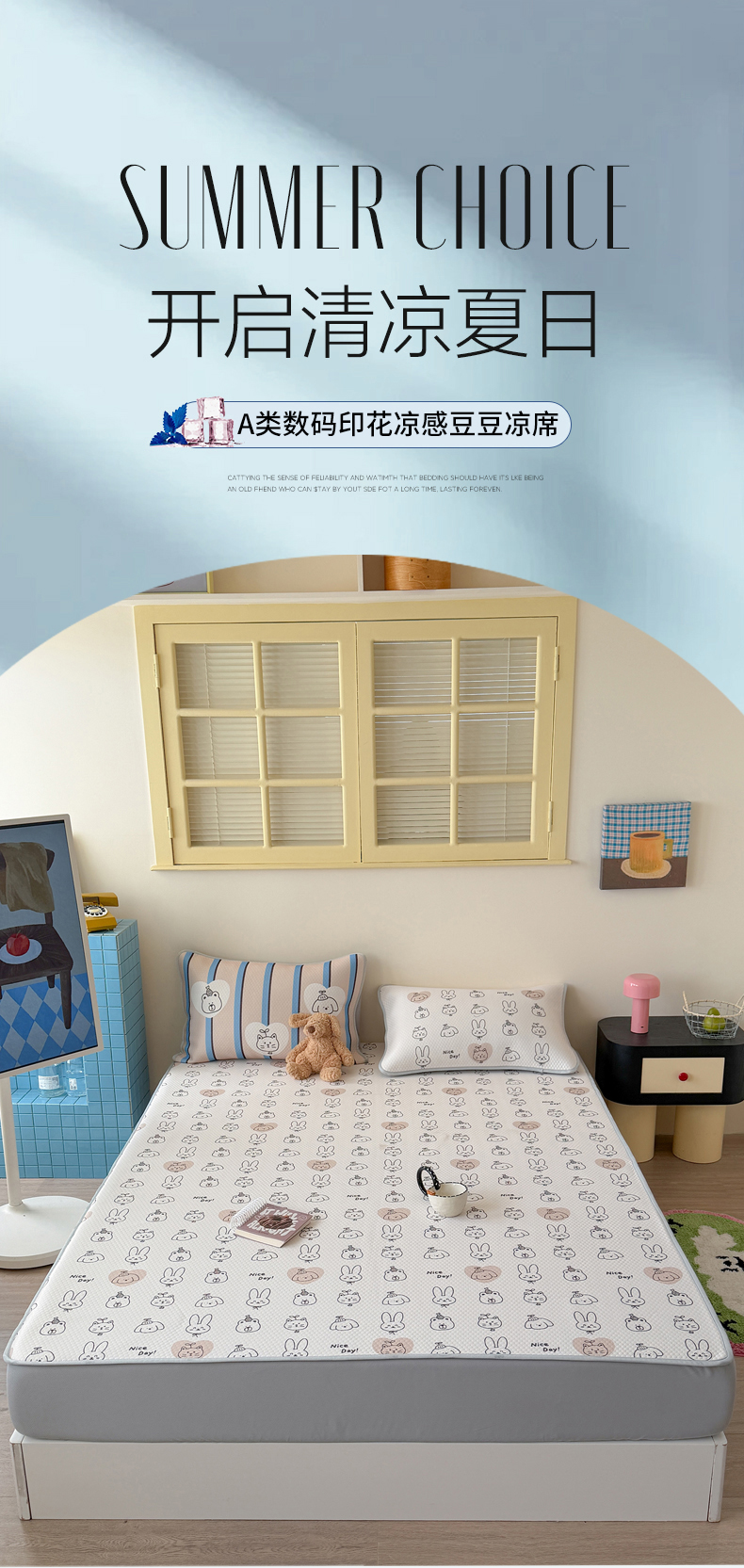 • 91家纺网 家纺一手货源 找家纺 Sweet dreams甜梦 2026新款A类数码印花凉感豆豆床笠款凉席--小版 美好一天