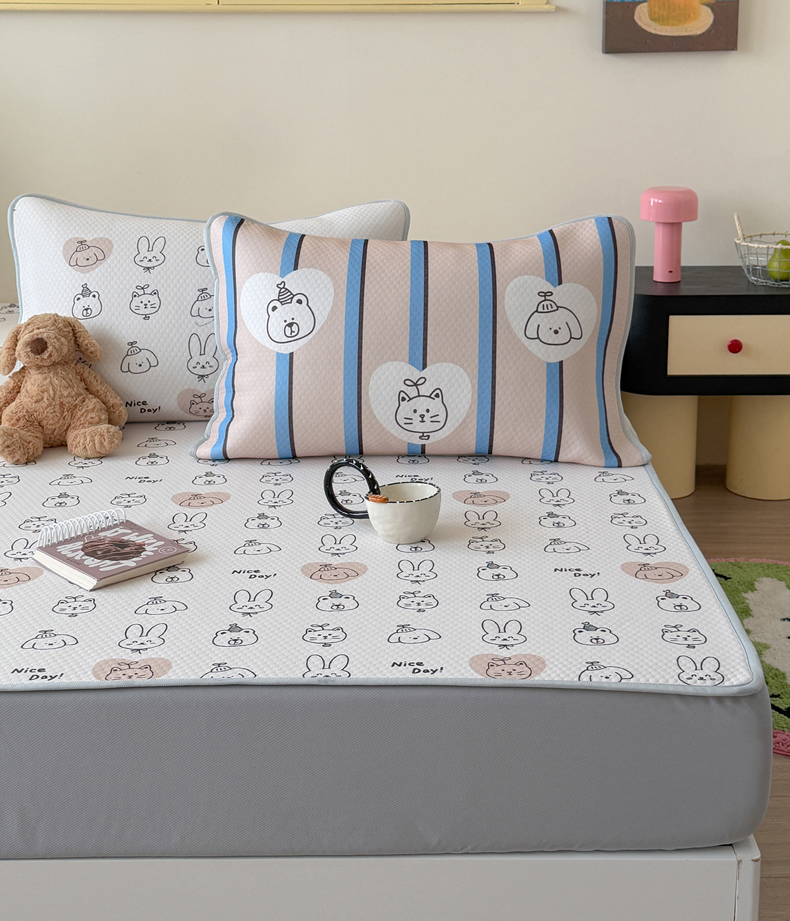 • 91家纺网 家纺一手货源 找家纺 (总)Sweet dreams甜梦 2026新款夏款A类锦氨卡通刺绣立体床笠款凉感席,安睡小熊,布噜海马,春日小兔,乐萌小象,组合