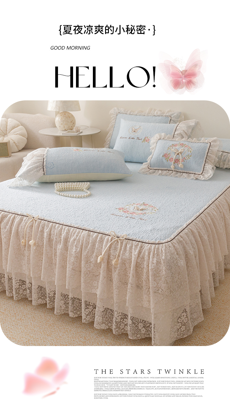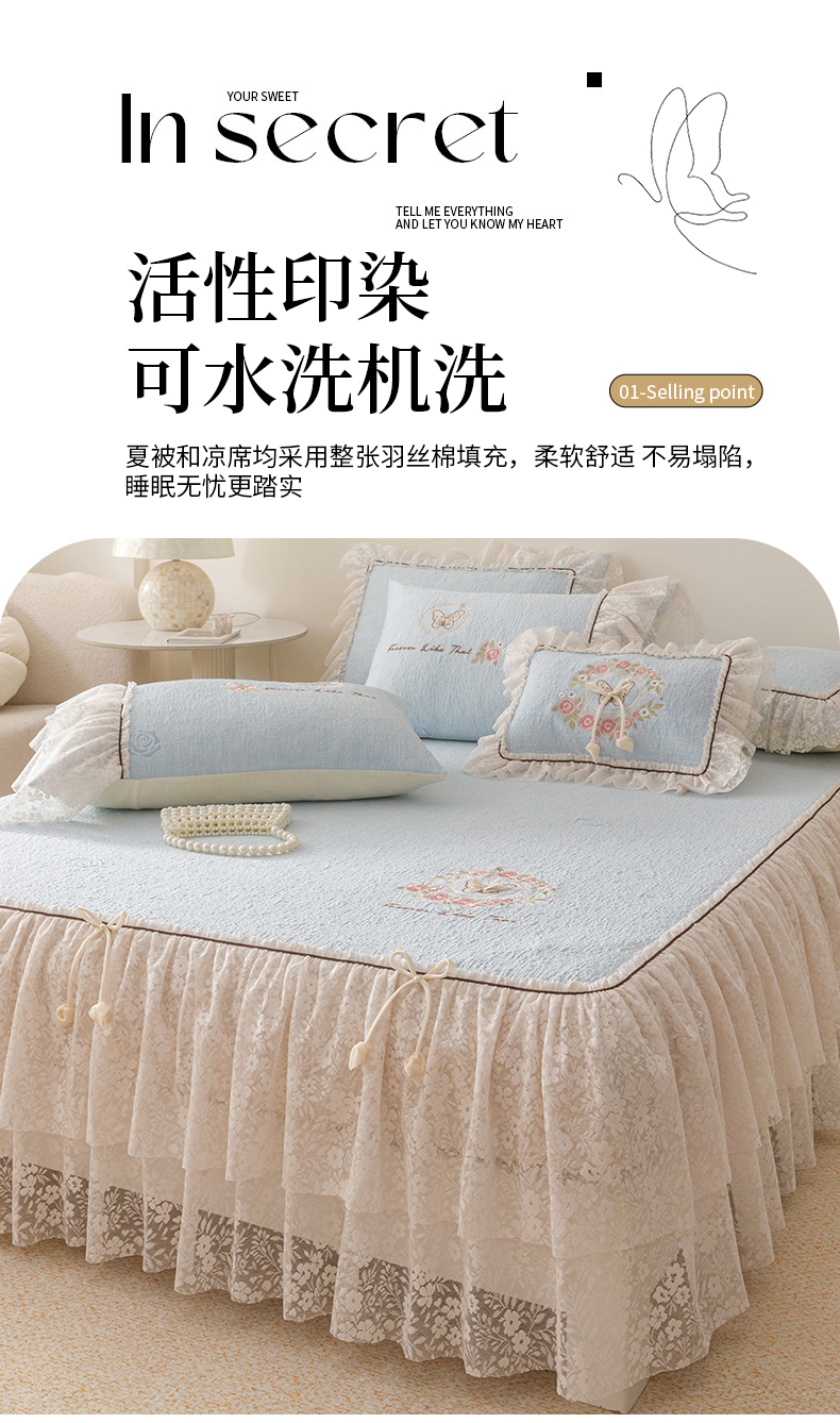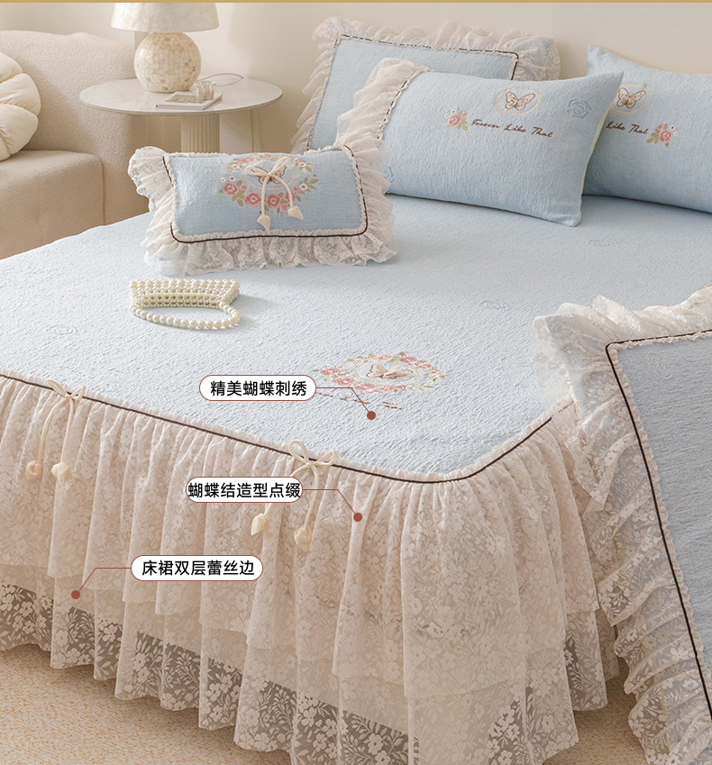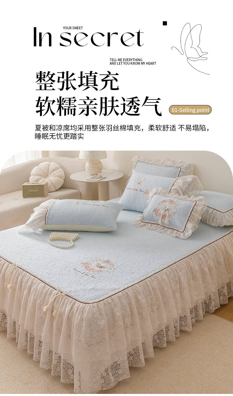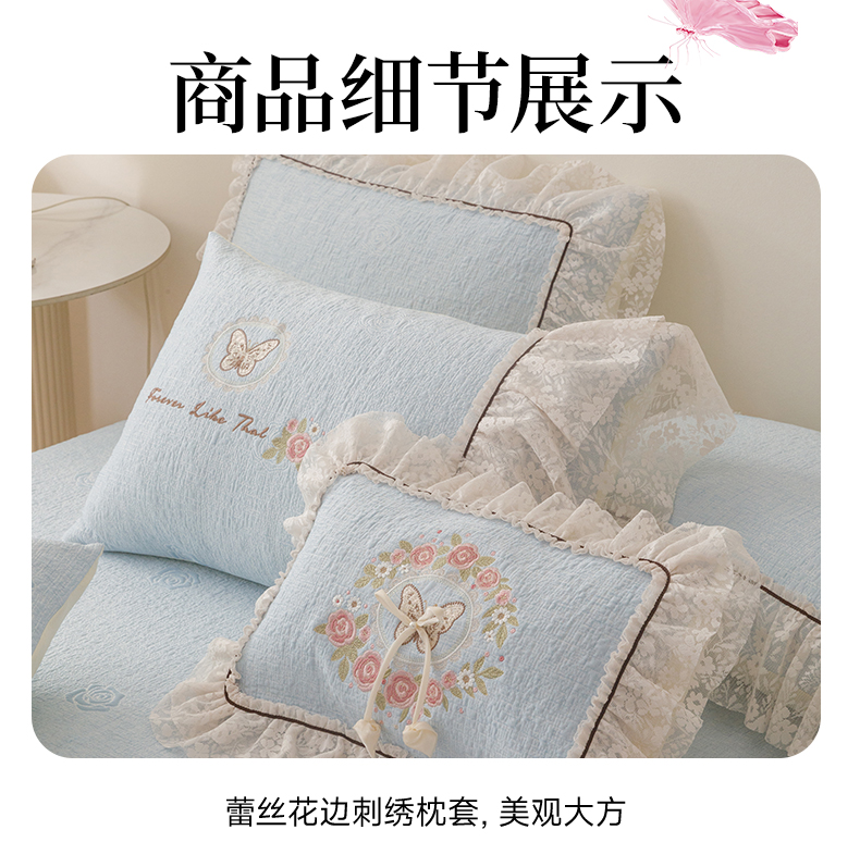 • 91家纺网 家纺一手货源 找家纺 (总)好儿喜家纺 2026新款软凉席空调软席乙纶凉席床裙可机洗夏被夏凉被空调被四件套-蝶语系列,蝶语-蓝,蝶语-奶白,蝶语-浅粉,蝶语-浅灰,蝶语-浅绿
