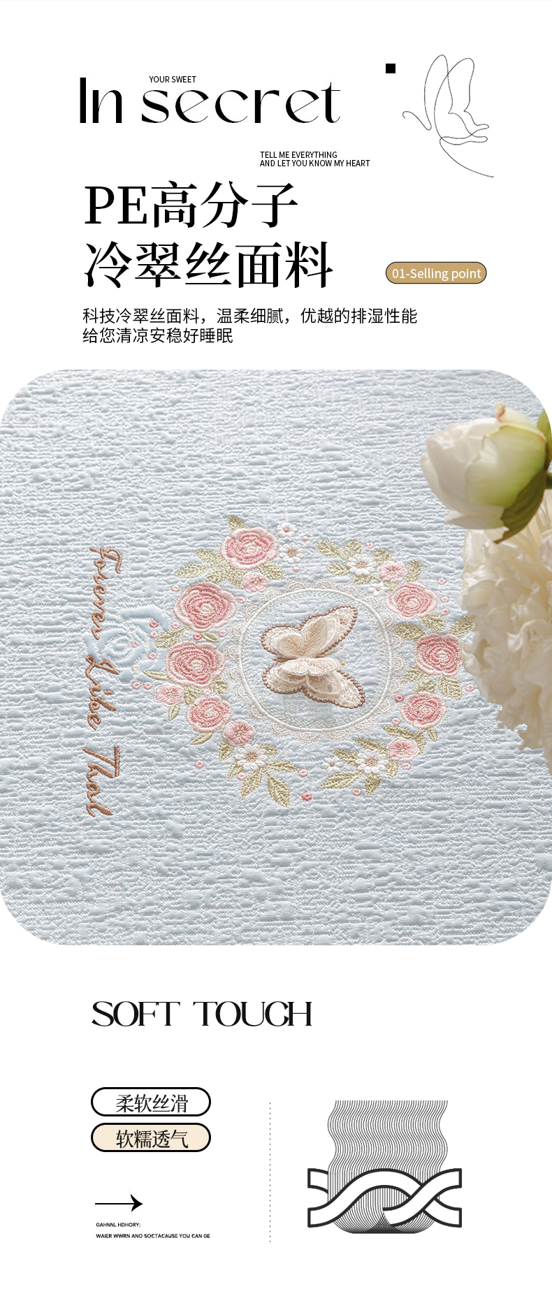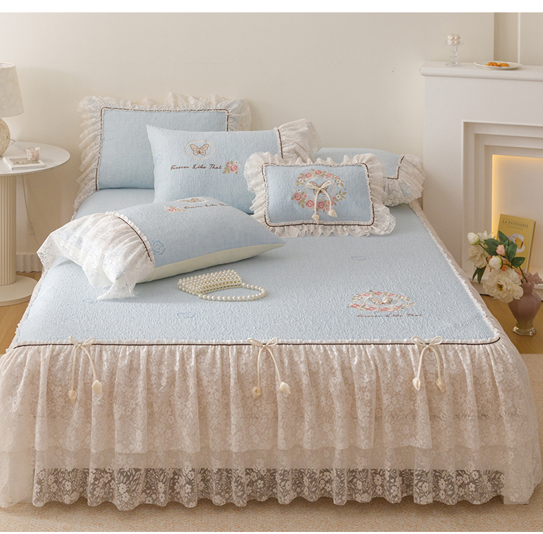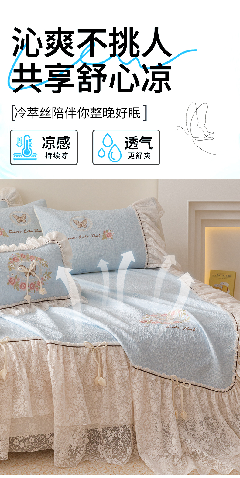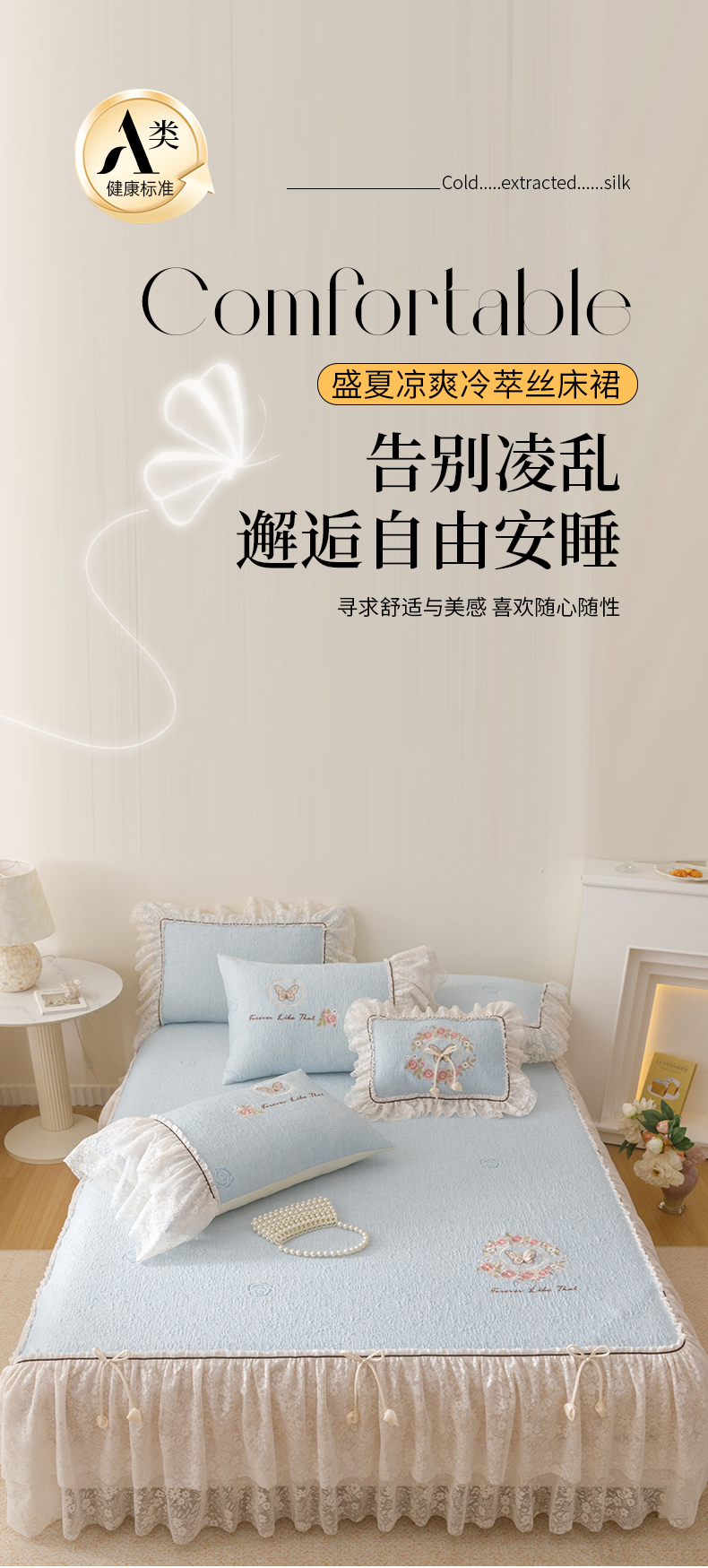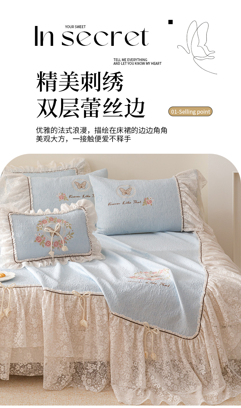 • 91家纺网 家纺一手货源 找家纺 (总)好儿喜家纺 2026新款软凉席空调软席乙纶凉席床裙可机洗夏被夏凉被空调被四件套-蝶语系列,蝶语-蓝,蝶语-奶白,蝶语-浅粉,蝶语-浅灰,蝶语-浅绿