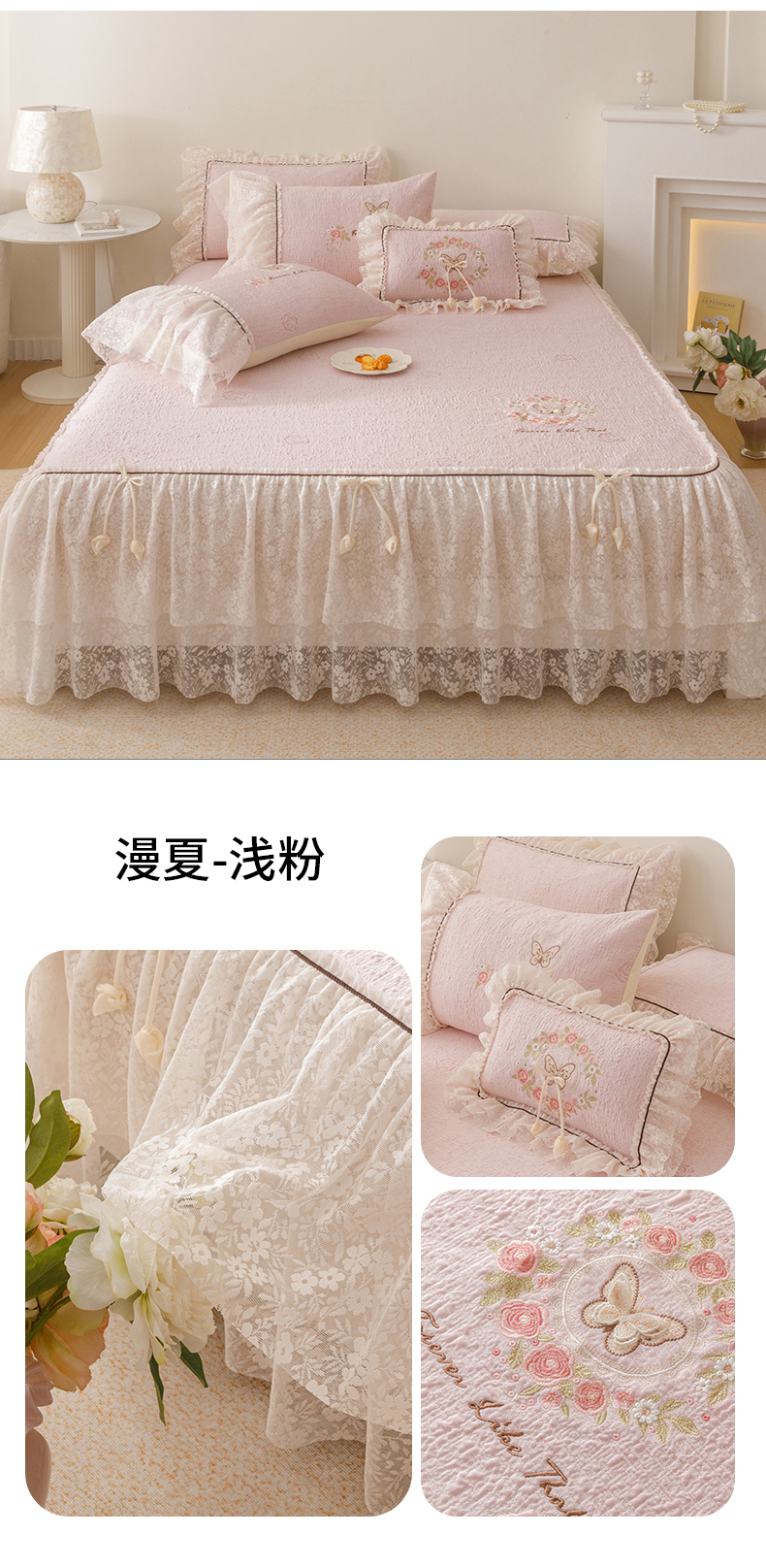 • 91家纺网 家纺一手货源 找家纺 (总)好儿喜家纺 2026新款软凉席空调软席乙纶凉席床裙可机洗夏被夏凉被空调被四件套-漫夏系列,漫夏-浅粉,漫夏-浅蓝,漫夏-浅绿,漫夏-香槟
