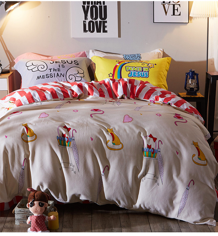 芃成家纺 活性磨毛混搭四件套猫时尚