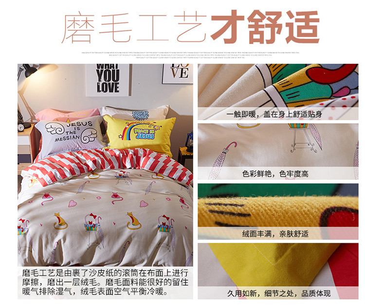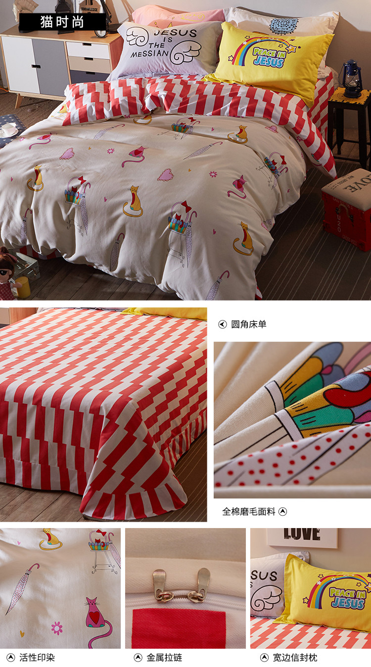 商品名称:芃成家纺 活性磨毛混搭四件套猫时尚