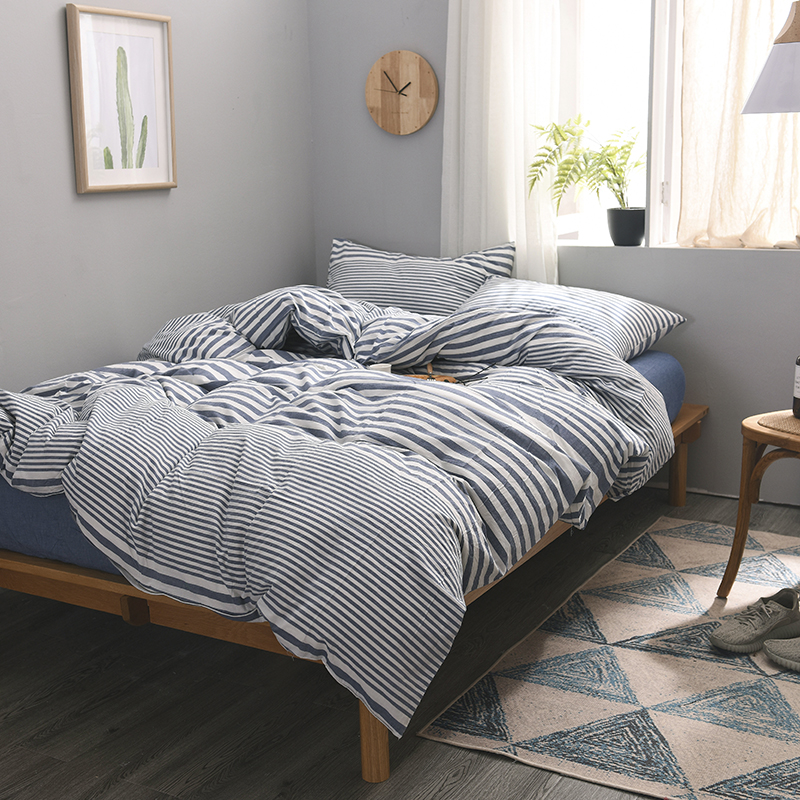 例外Home 水洗棉四件套床笠款渐变条-蓝