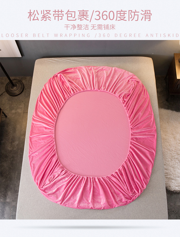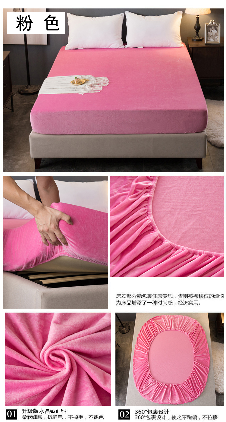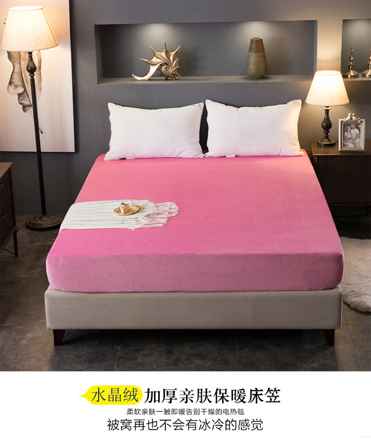 商品名称:怡家居 2018新款水晶绒加厚保暖单品床笠 粉色