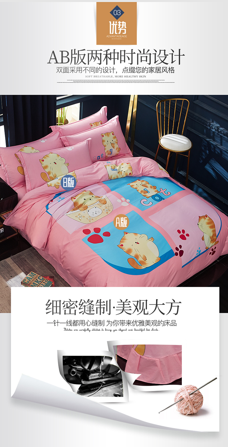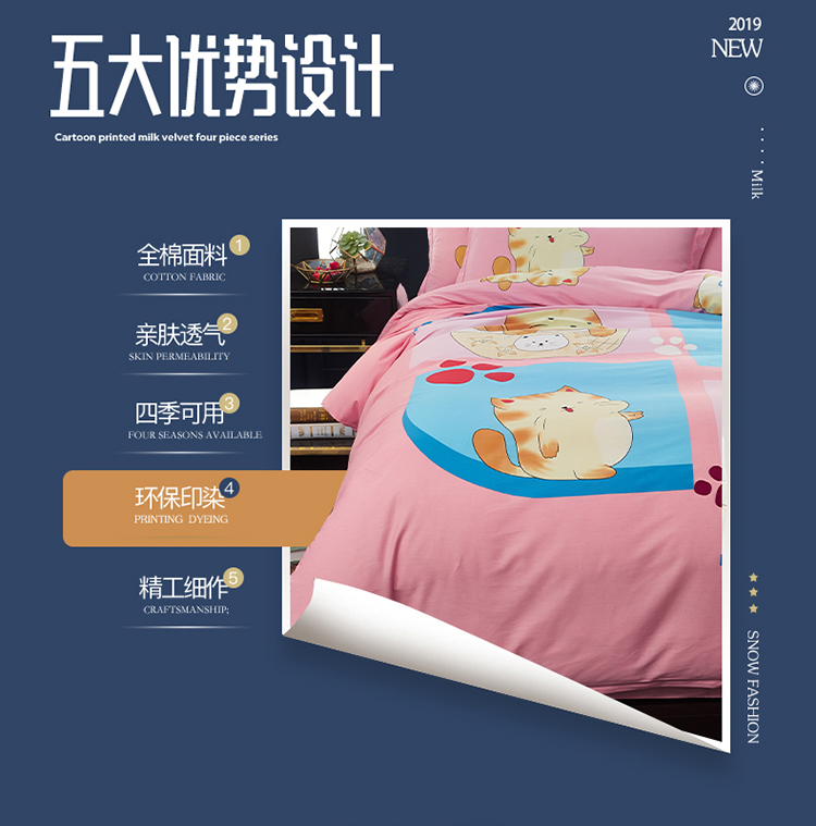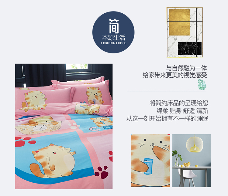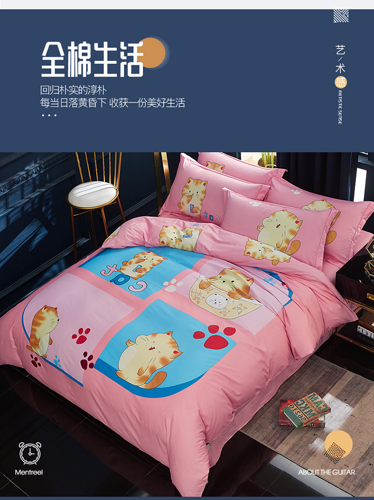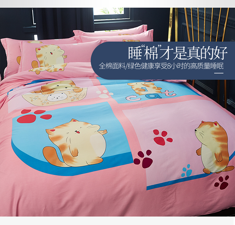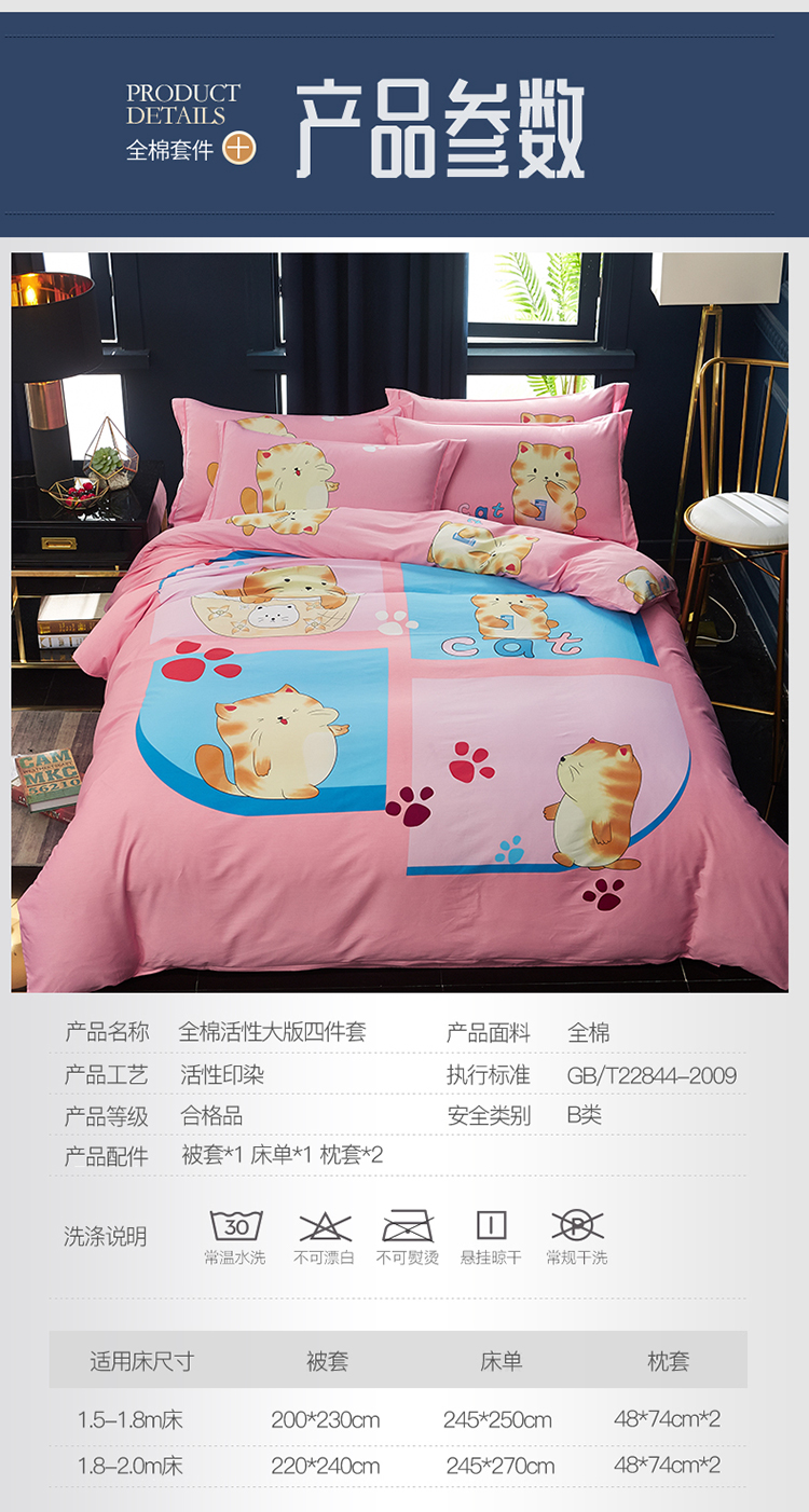商品名称:雲归梦 2019全棉活性大版简约卡通风格四件套 小萌宠粉
