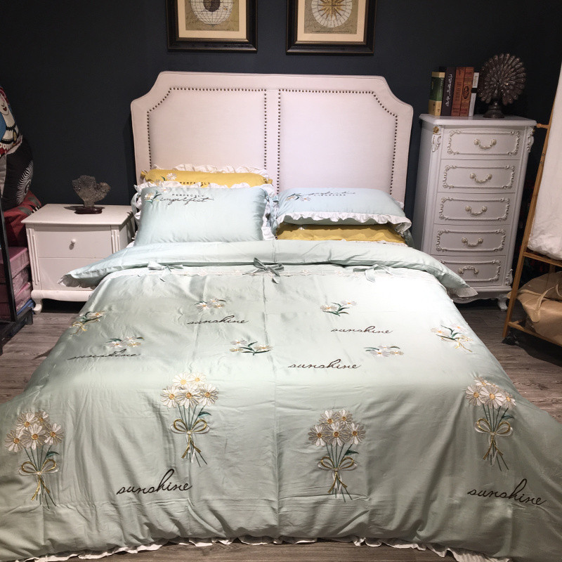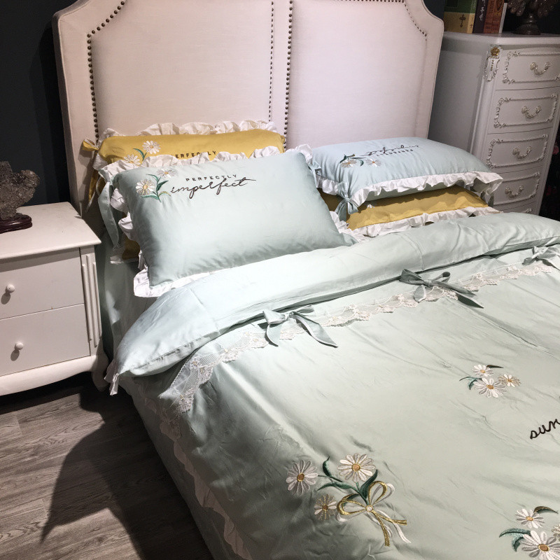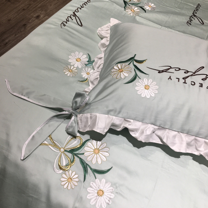 玖玖爱2020新款80支长绒棉工艺绣花系列四件套花诺-薄荷绿