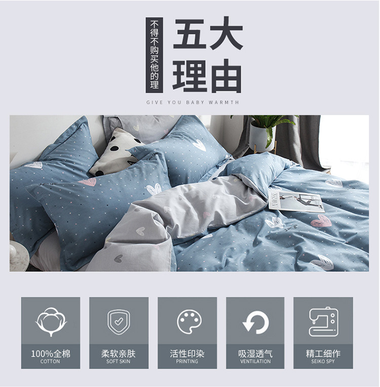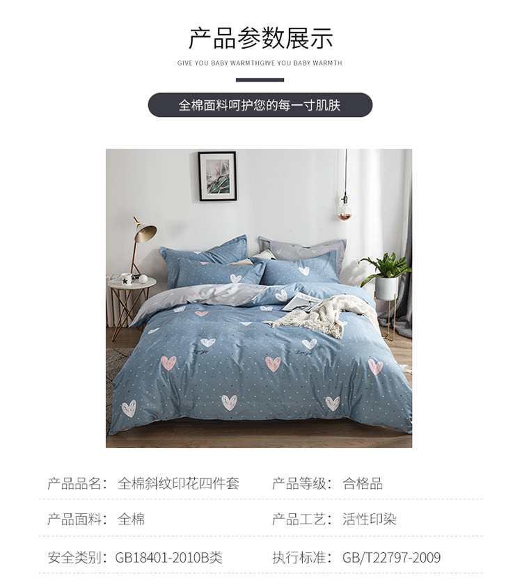 商品名称:芃成 2020洛卡全棉12868四件套 心相恋蓝