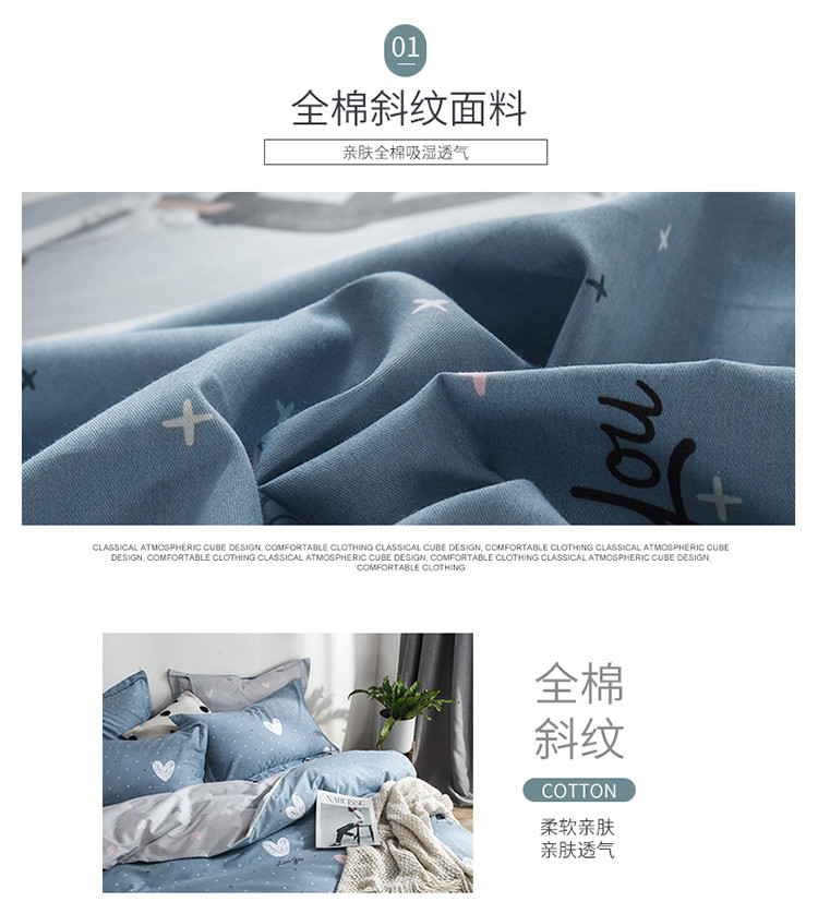 芃成 2020洛卡全棉12868四件套 心相恋蓝