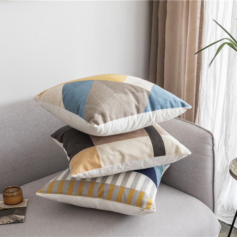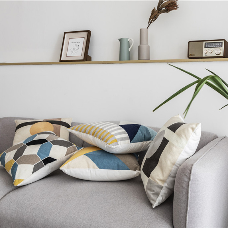 (总)918拾朵家居 2023新款简约风圈绒刺绣抱枕,灰咖(方),灰咖(长),洋橘(方),洋橘(长)