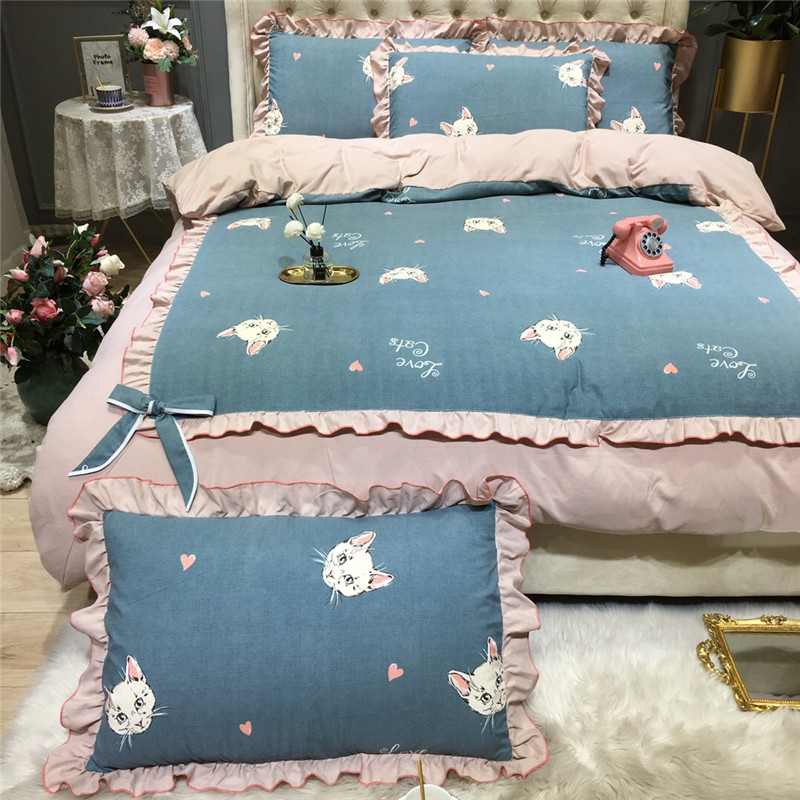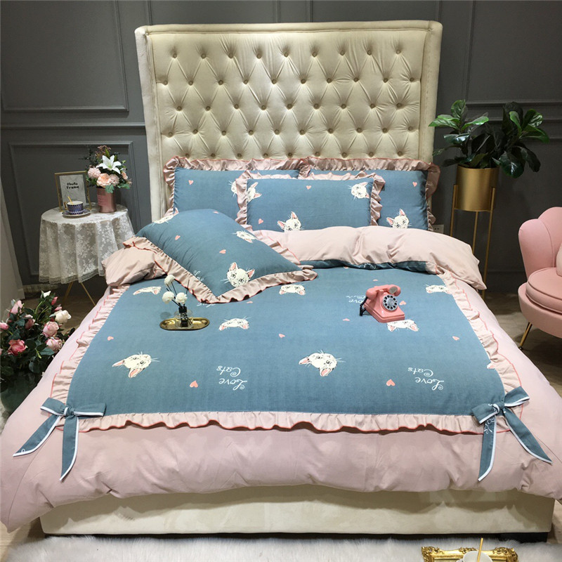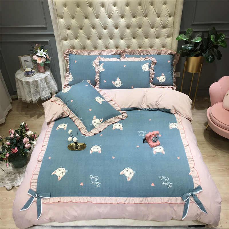 (总)眠屿家纺 2025新款全棉秋冬磨毛贴布绣四件套,爱心猫咪,蛋糕狗狗,可爱玩偶,热量100%