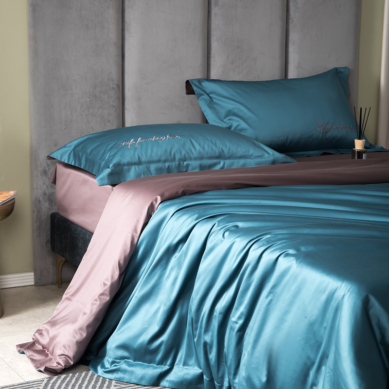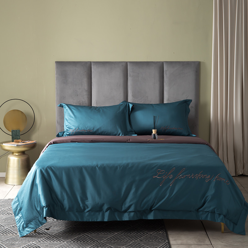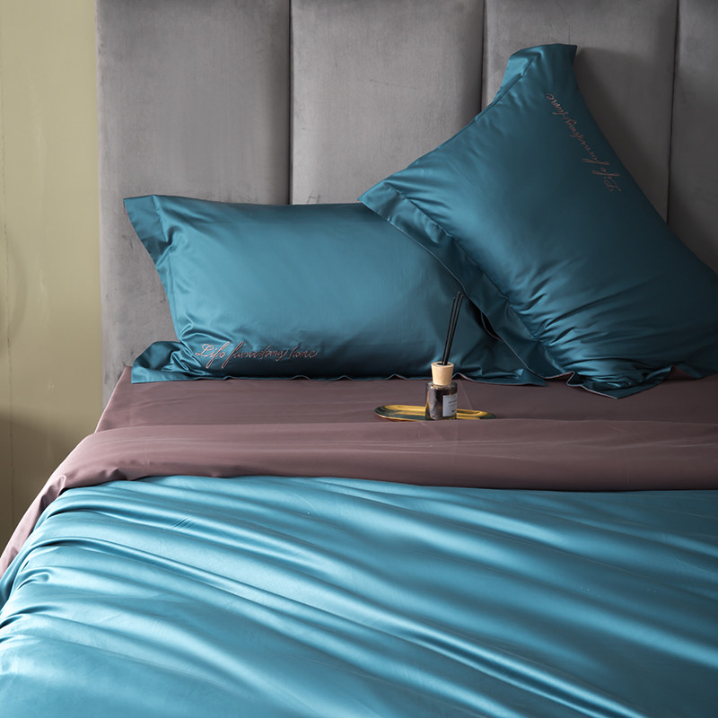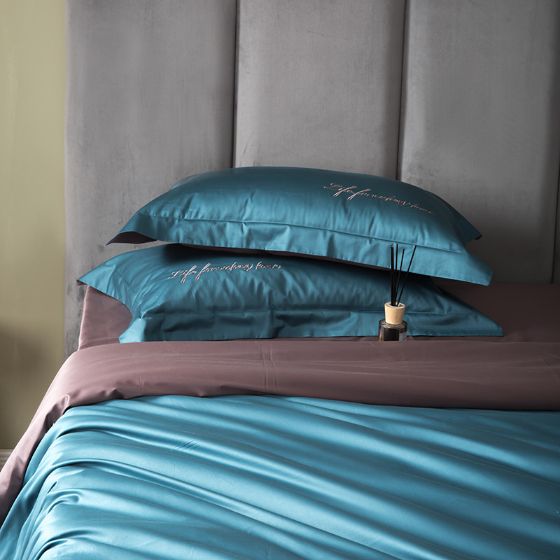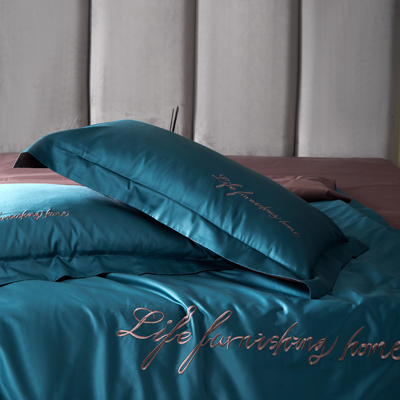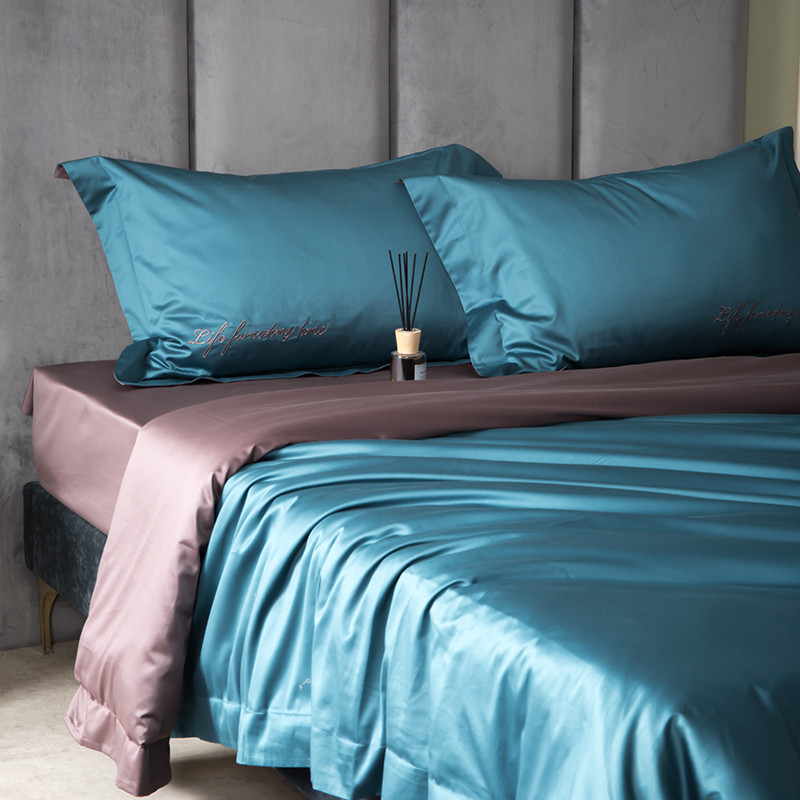太古汇 双股纯色双拼绣花宽边四件套 月光蓝