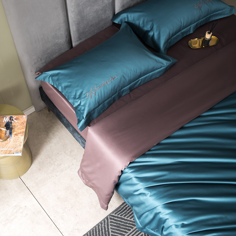 商品名称:太古汇 双股纯色双拼绣花宽边四件套 月光蓝