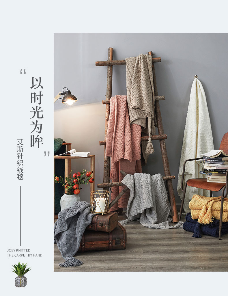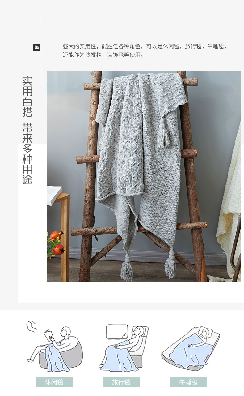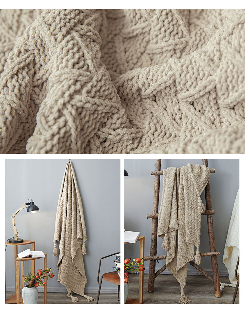 (总)暖绵绵家纺 2026新款几何编制温柔米色流苏针织毯-艾岚珍(本款券后/折后零售价不得低于330元),艾岚珍