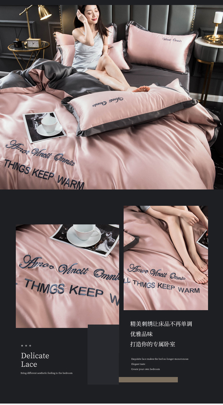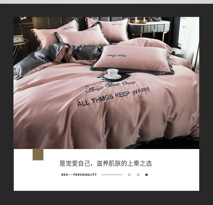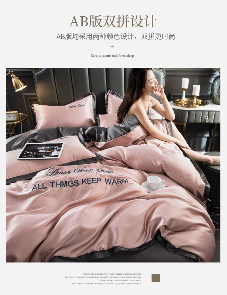欧冠家纺 2020爆款盛夏水洗真丝四件套 香槟+深灰