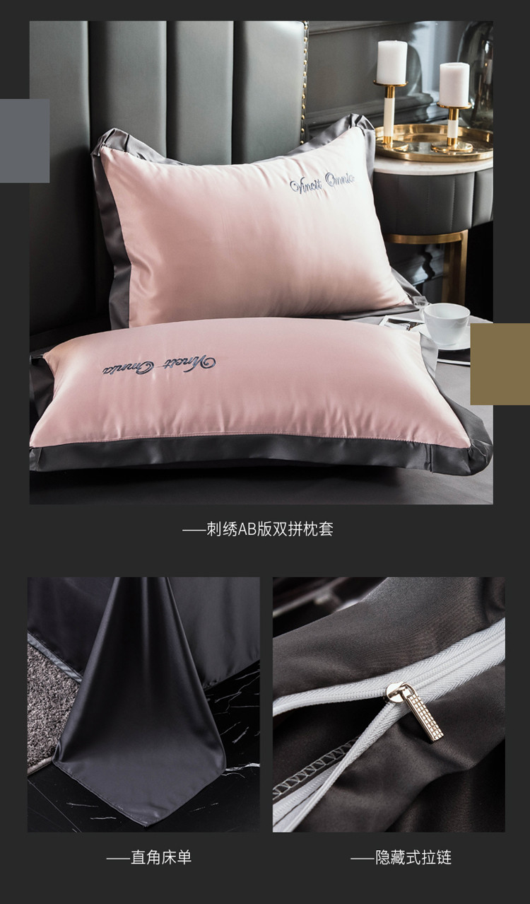 商品名称:欧冠家纺 2020爆款盛夏水洗真丝四件套 香槟+深灰