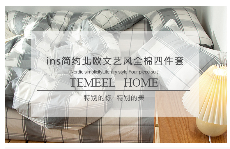 商品名称:感遇 2020新款ins全棉简约北欧风单被套 灰白格子