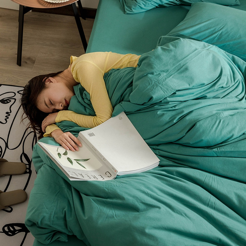 商品名称:华超针织 2021新款针织纯色单被套 湖绿