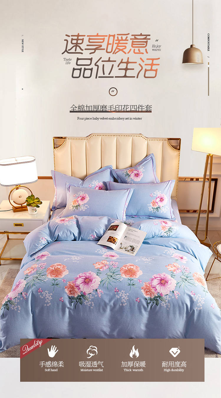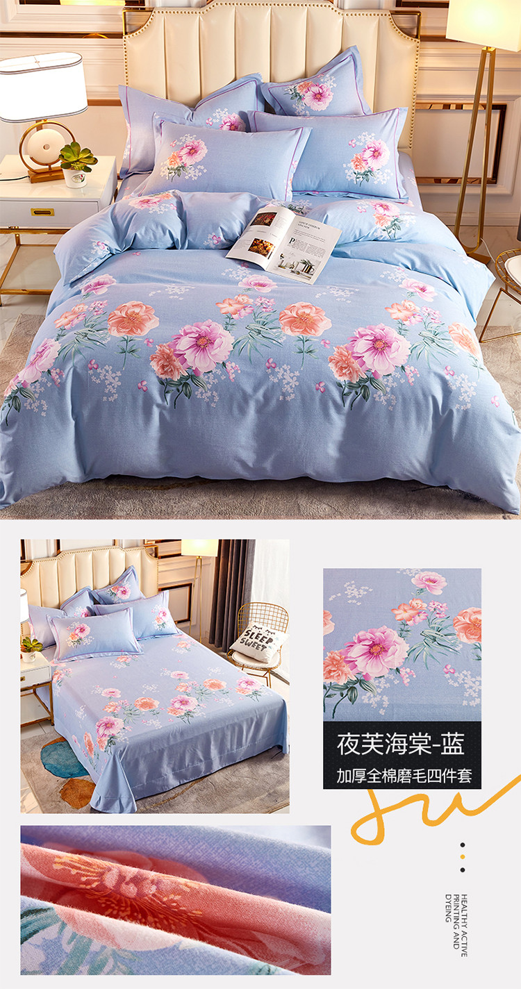 当前位置: 91家纺网 > 商品网购 > 床品套件 > 四件套 > 全棉普通四件套 > 雲归梦 2020新款全棉加厚磨毛四件套 夜芙海棠-蓝