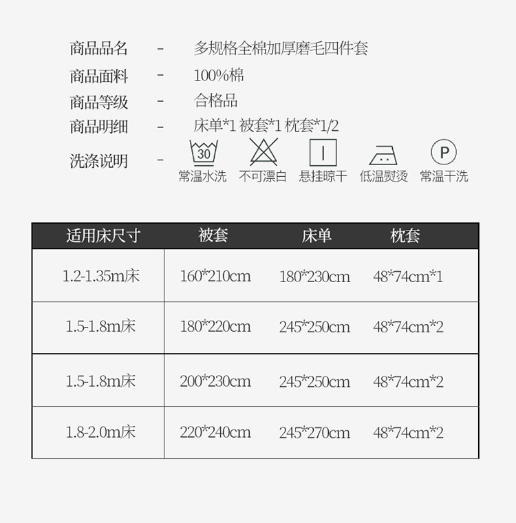 1.8米床笠款四件套(定做) | ¥120.00 |