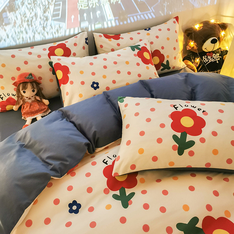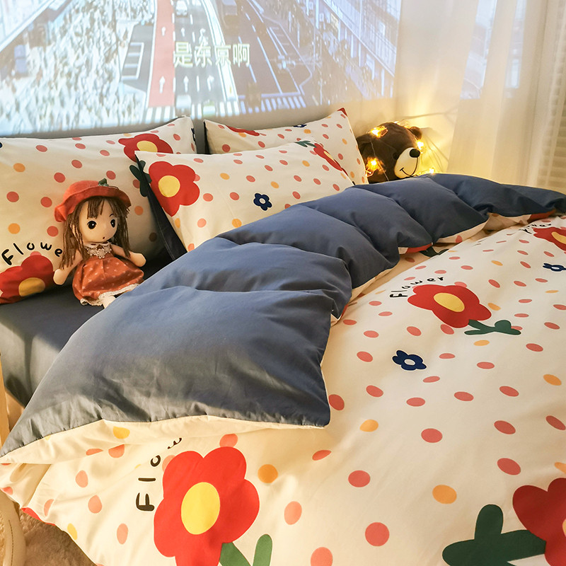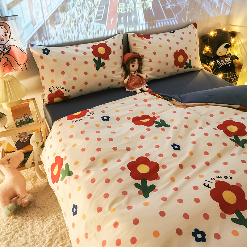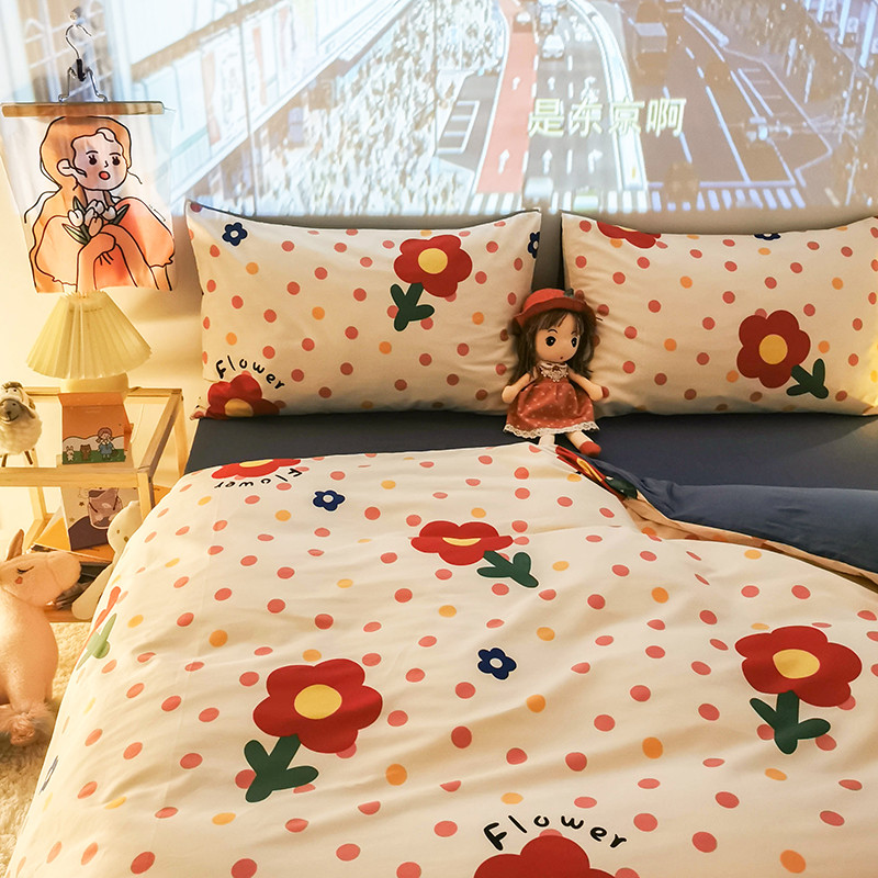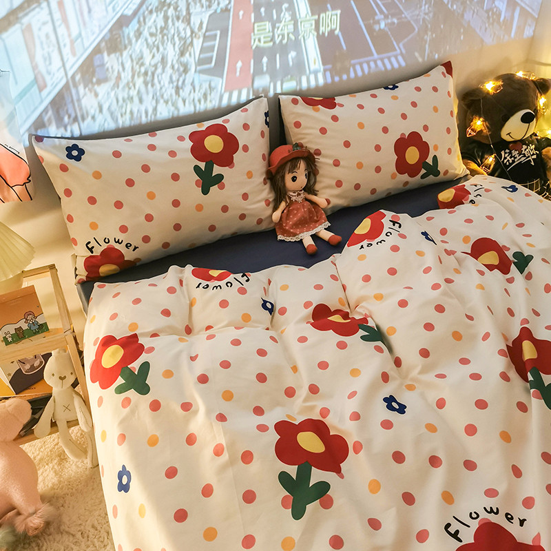 HL原创新款13372全棉四件套夜晚网红风实拍图 小红花