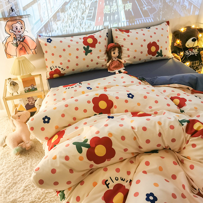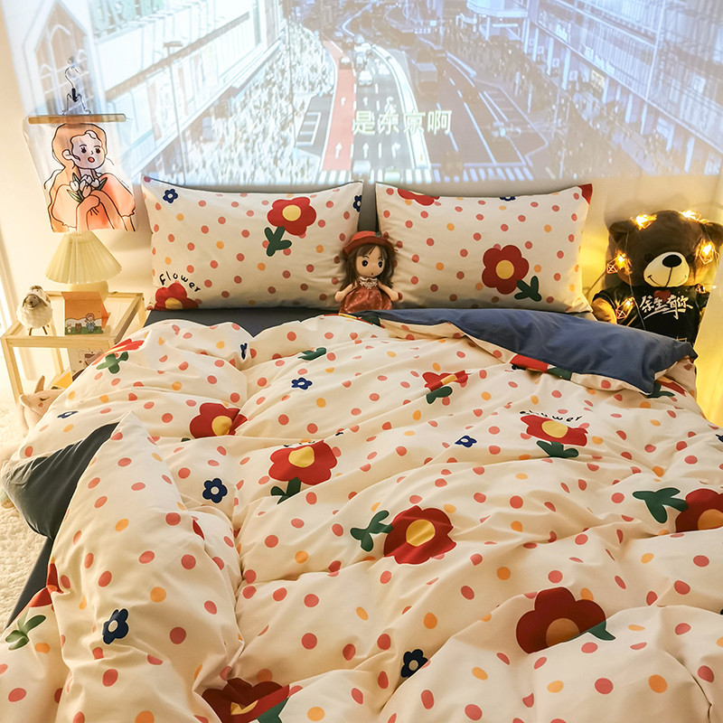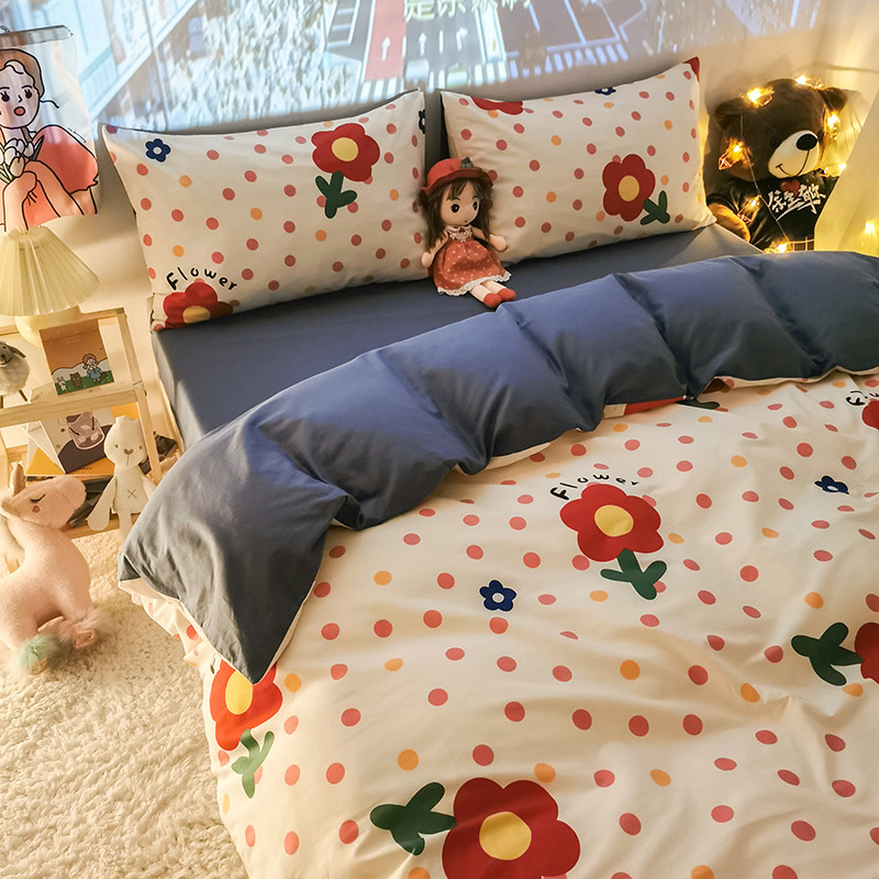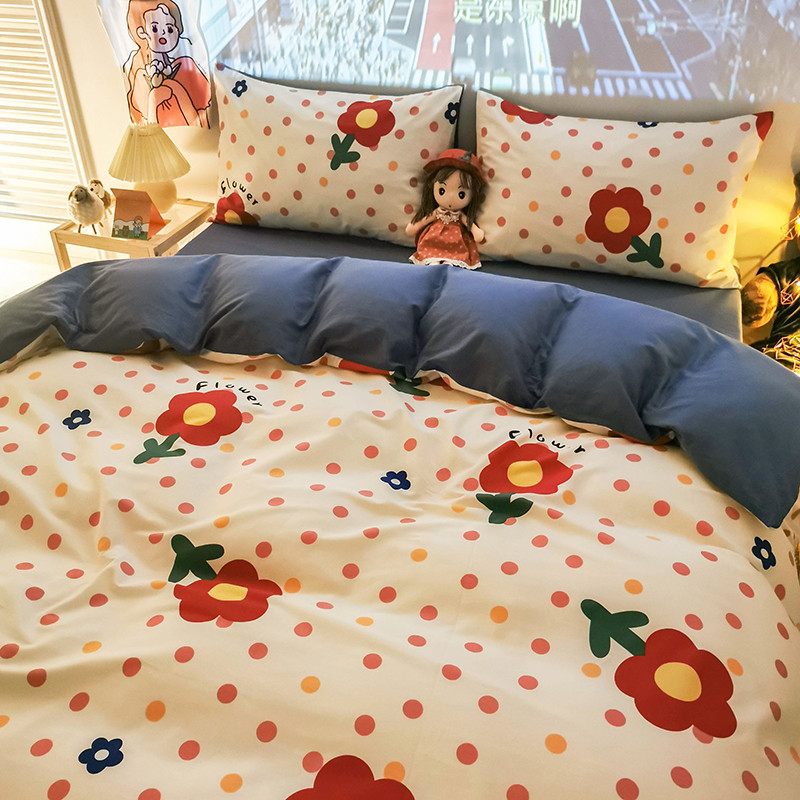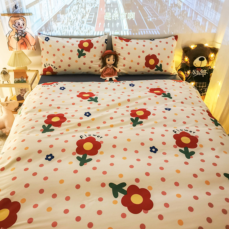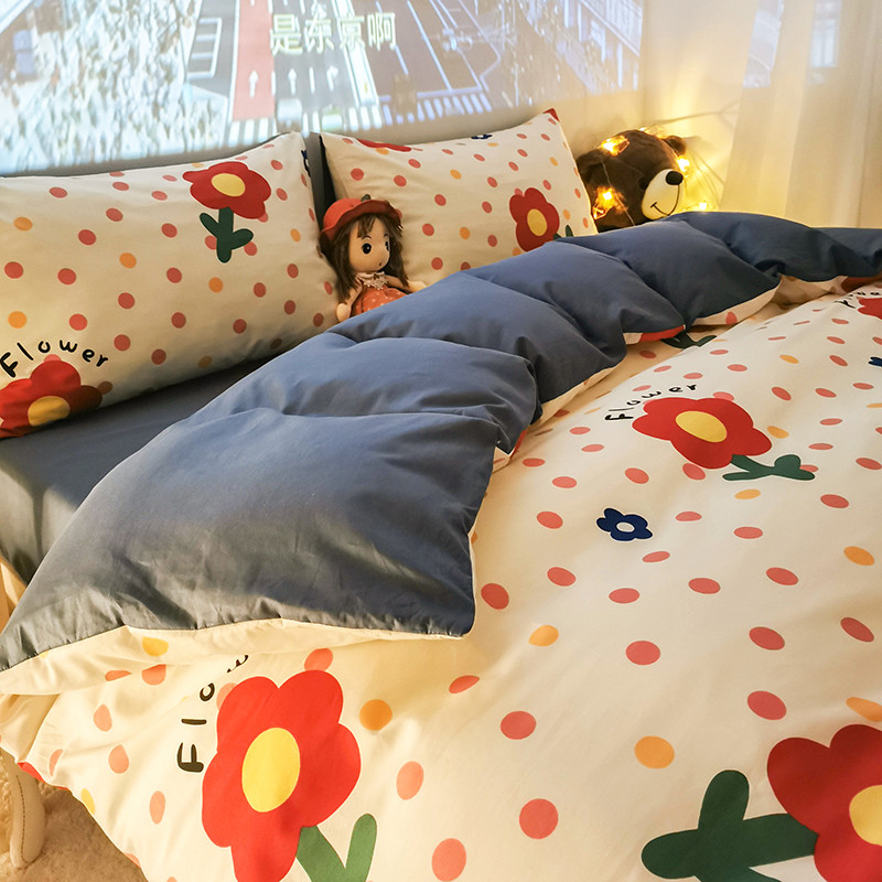 HL原创新款13372全棉四件套夜晚网红风实拍图 小红花