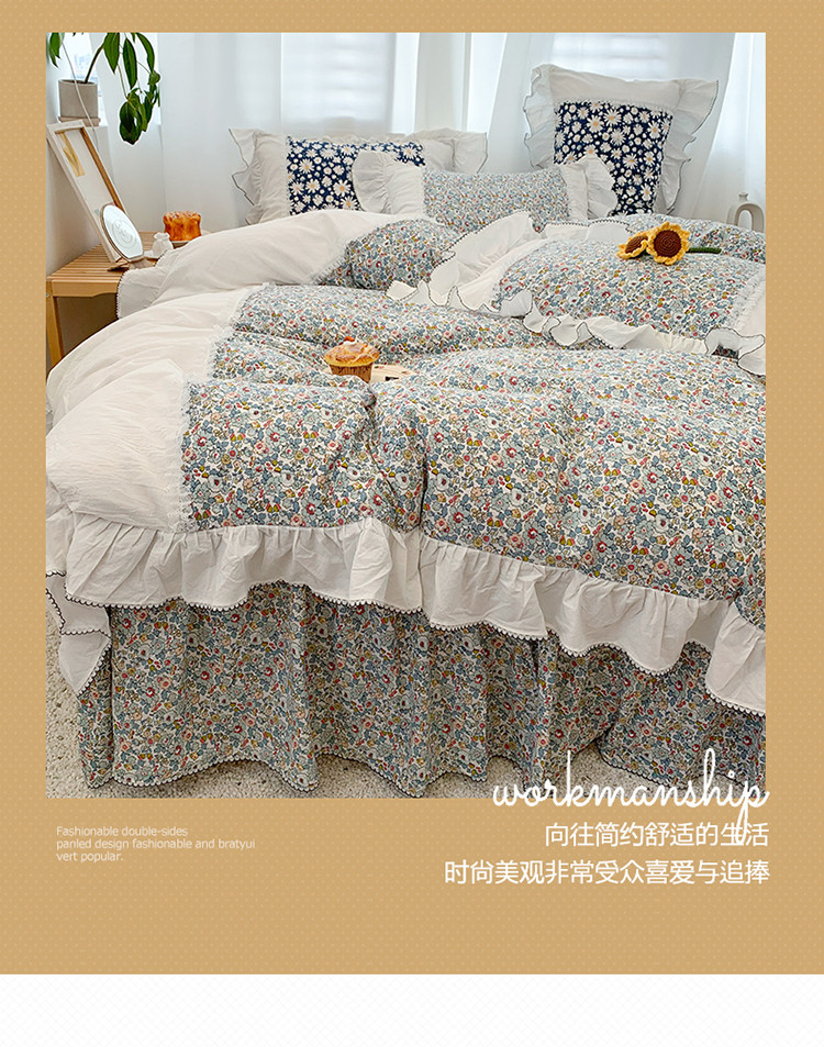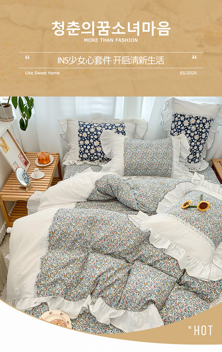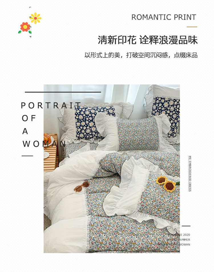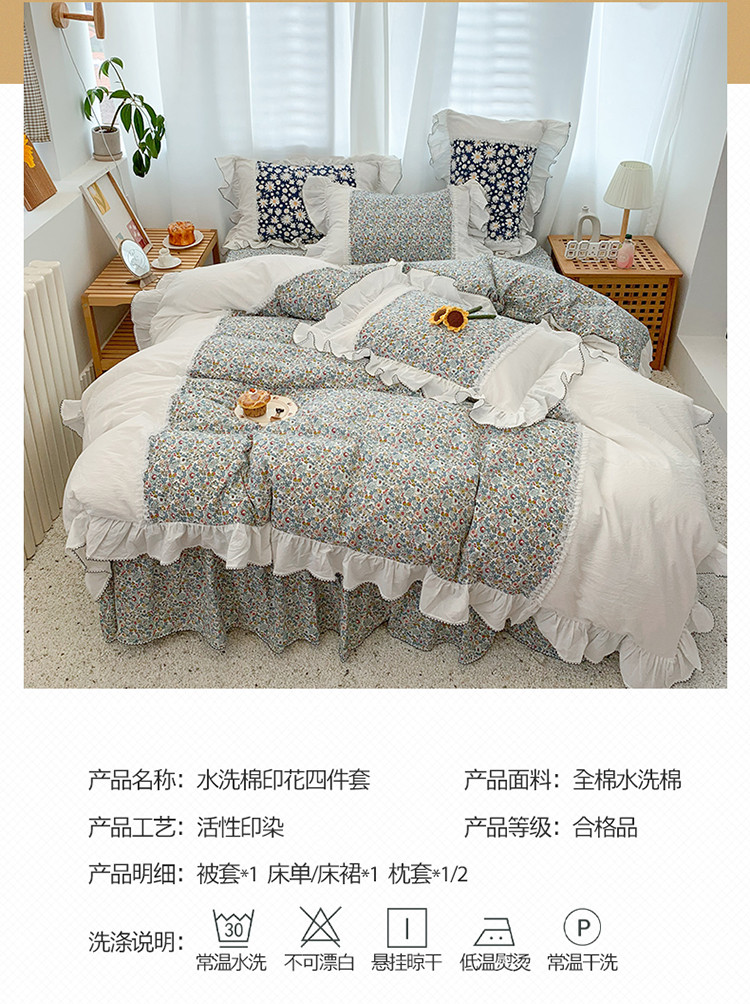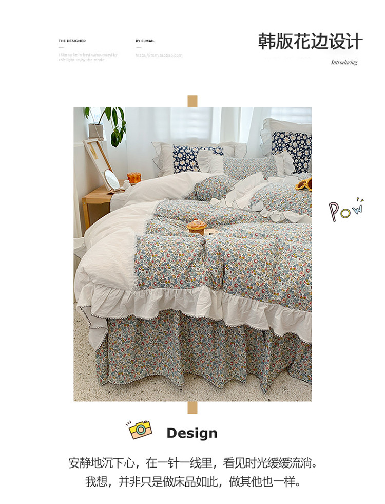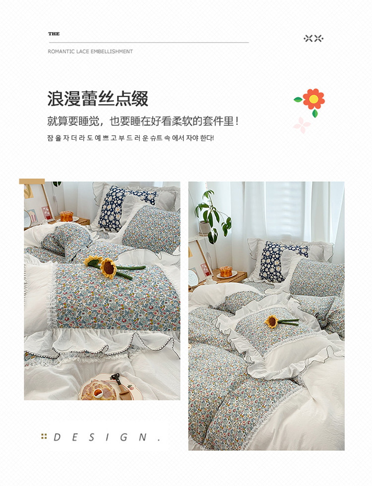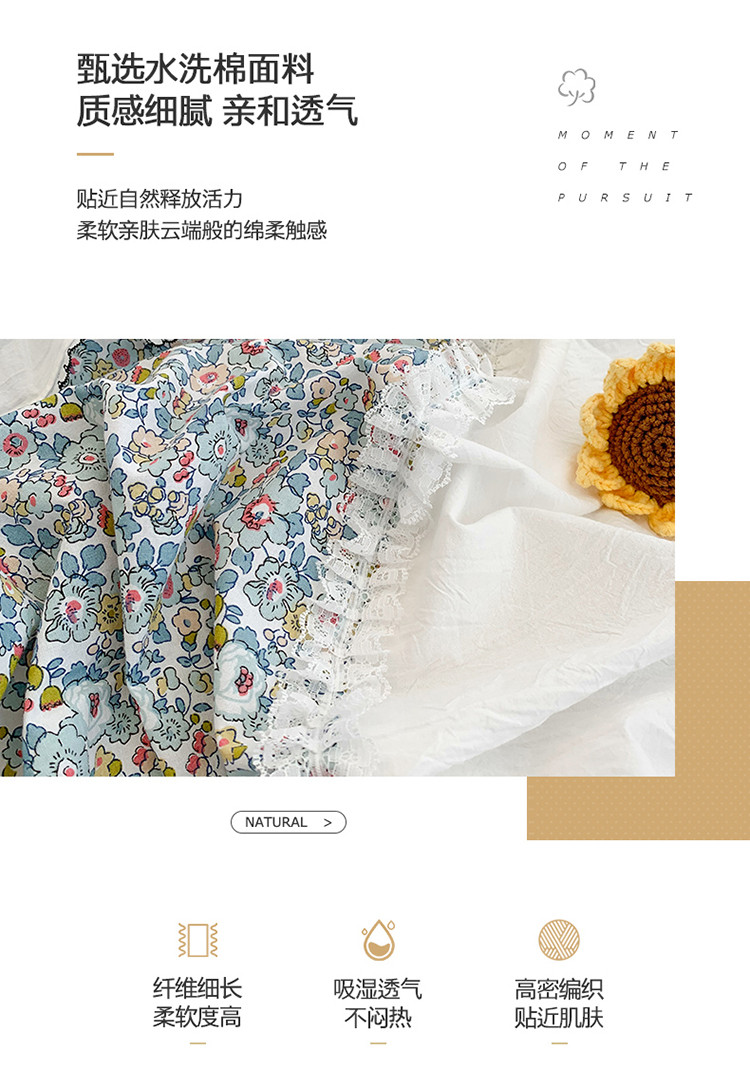 当前位置: 91家纺网 > 商品网购 > 床品套件 > 四件套 > 水洗棉四件套 > 婳庭 2020新款小碎花蕾丝边水洗棉印花四件套 沐春