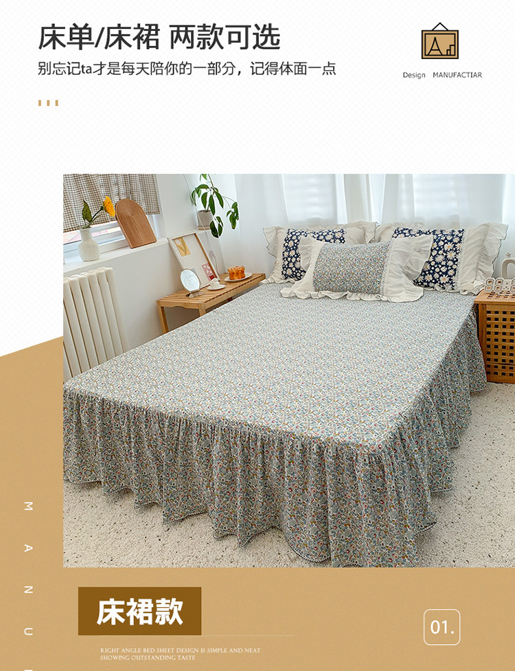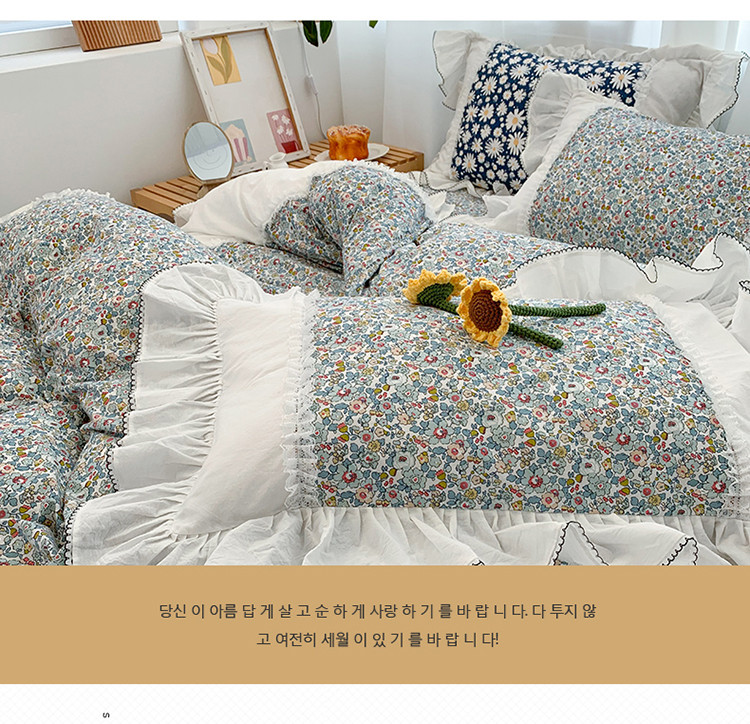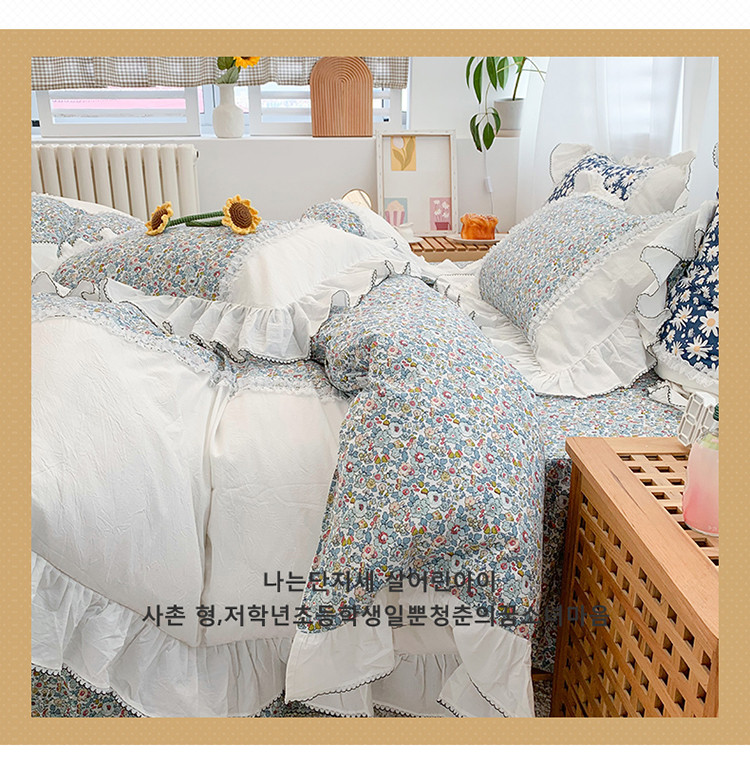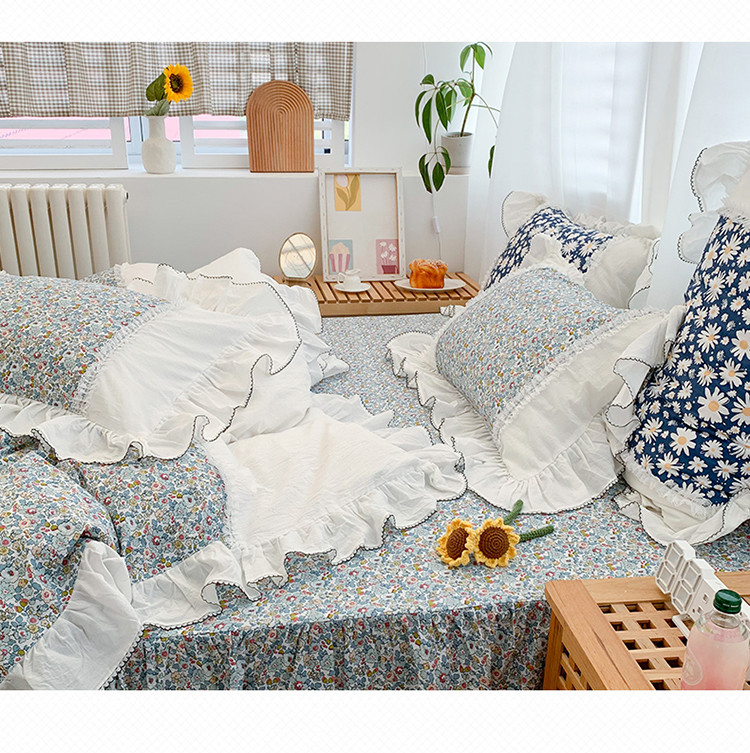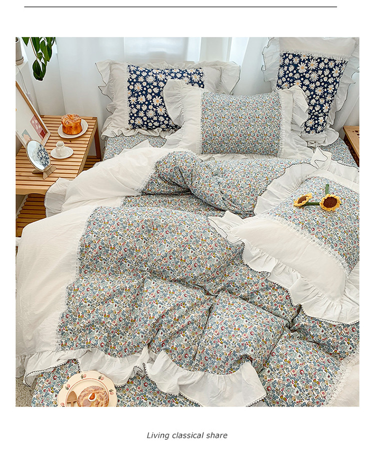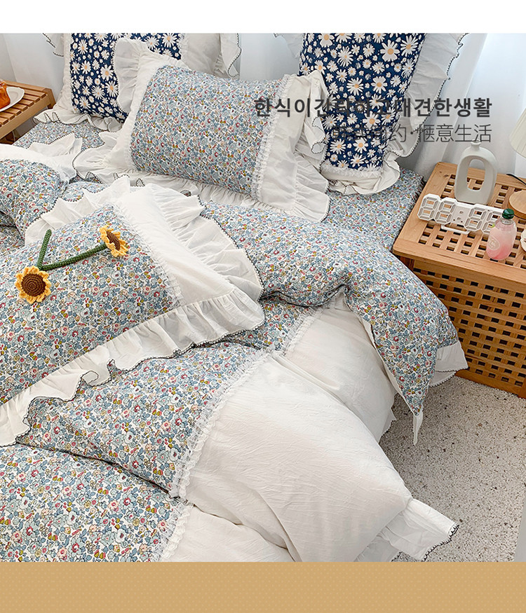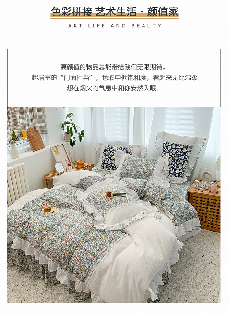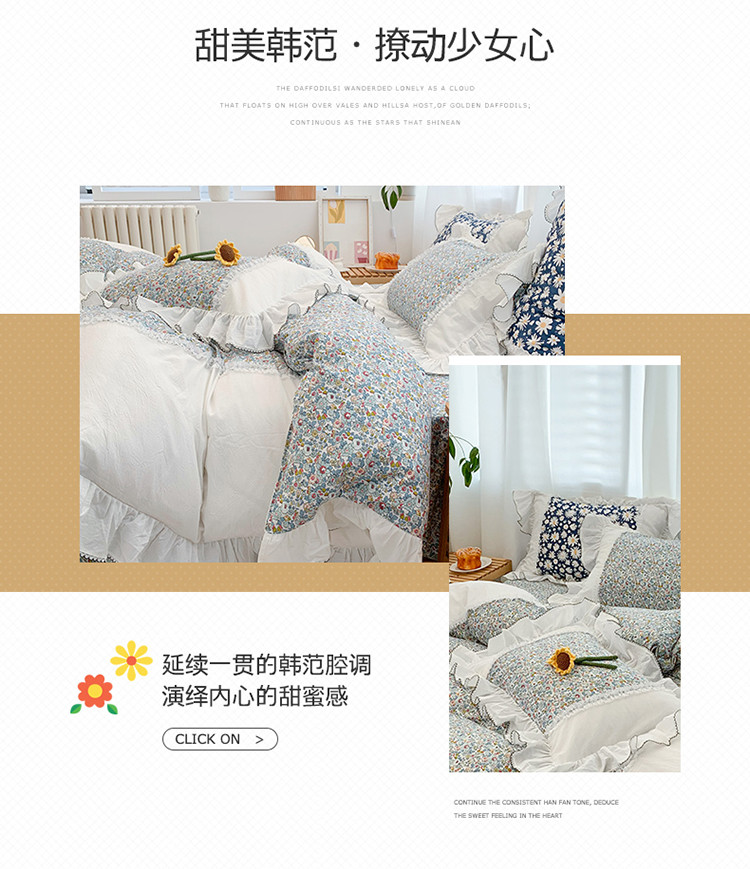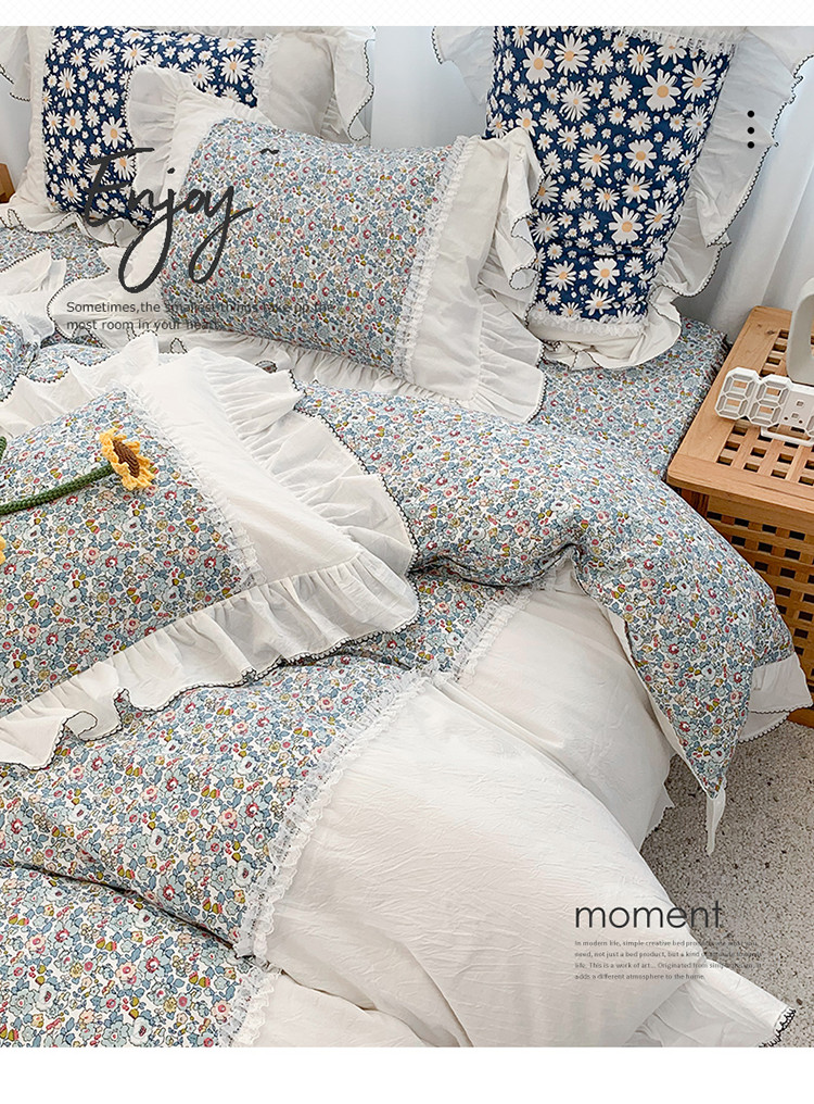 当前位置: 91家纺网 > 商品网购 > 床品套件 > 四件套 > 水洗棉四件套 > 婳庭 2020新款小碎花蕾丝边水洗棉印花四件套 沐春