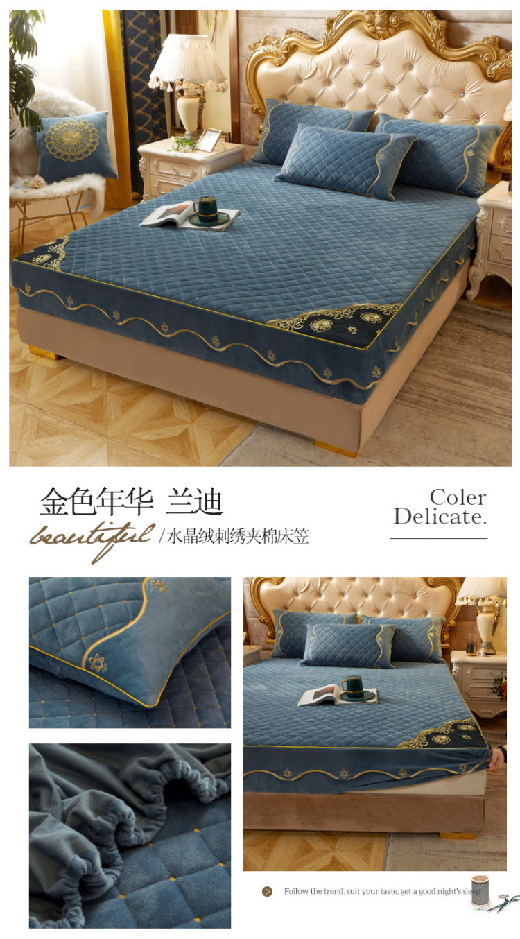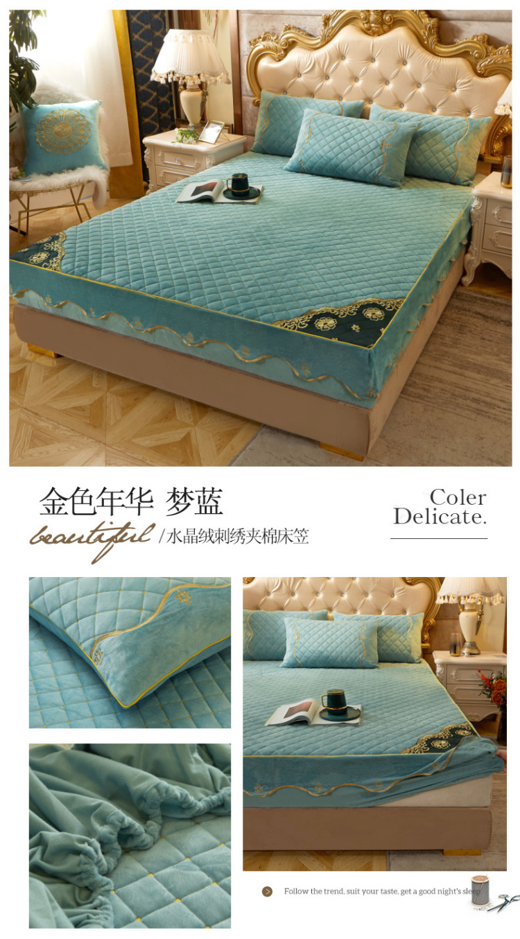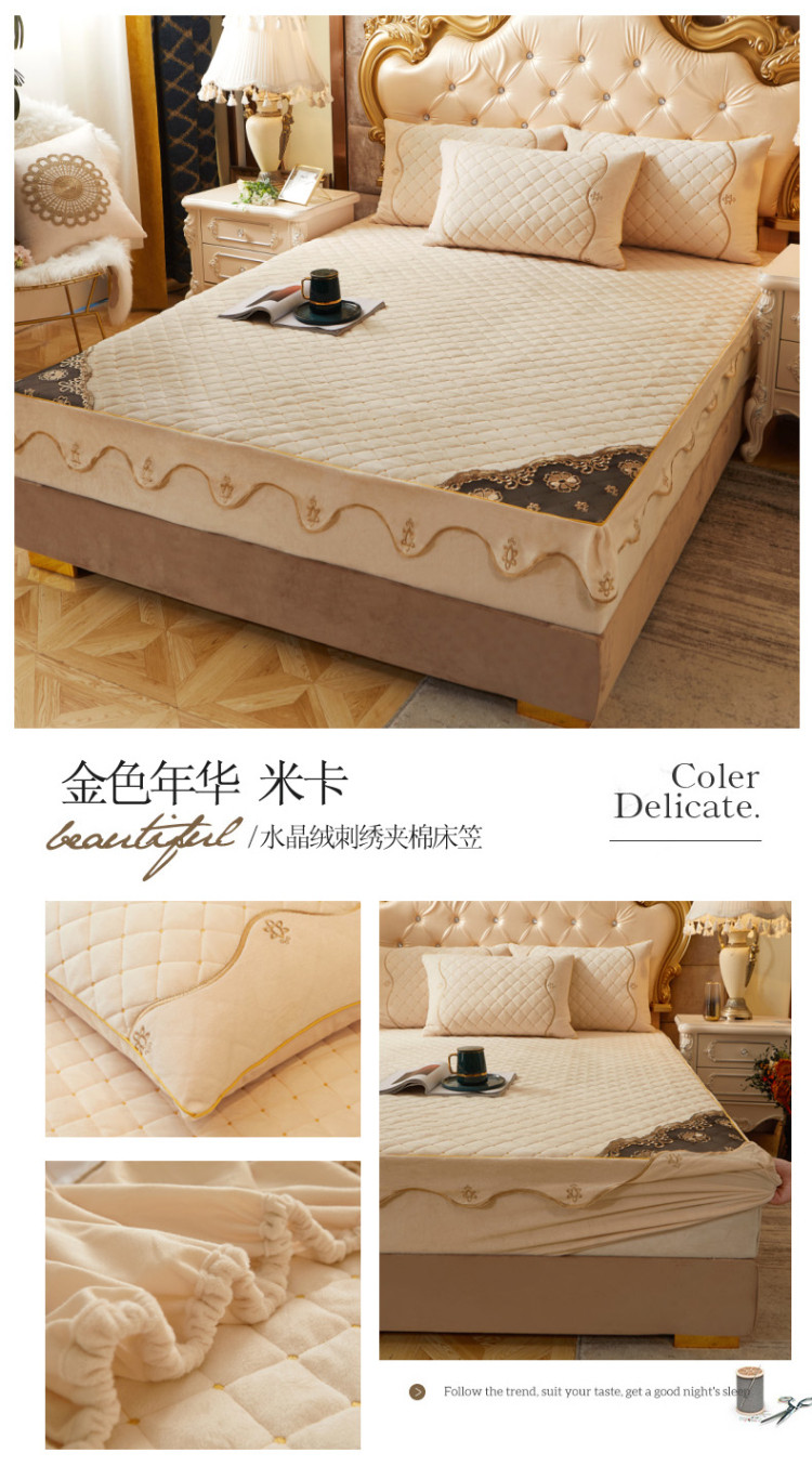(总)菊上2021新款加厚水晶绒单床笠金色年华系列