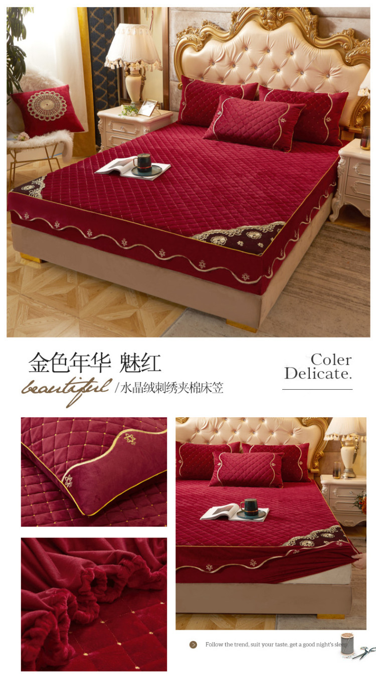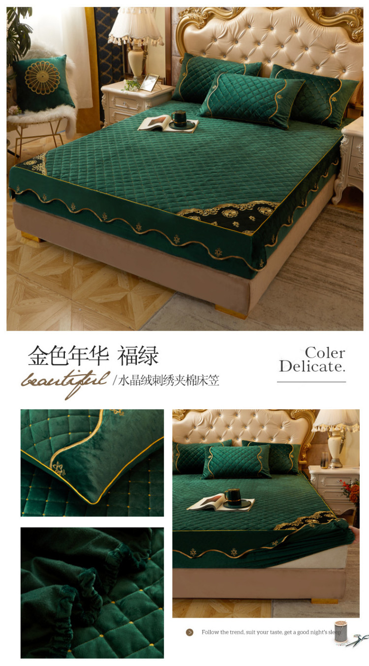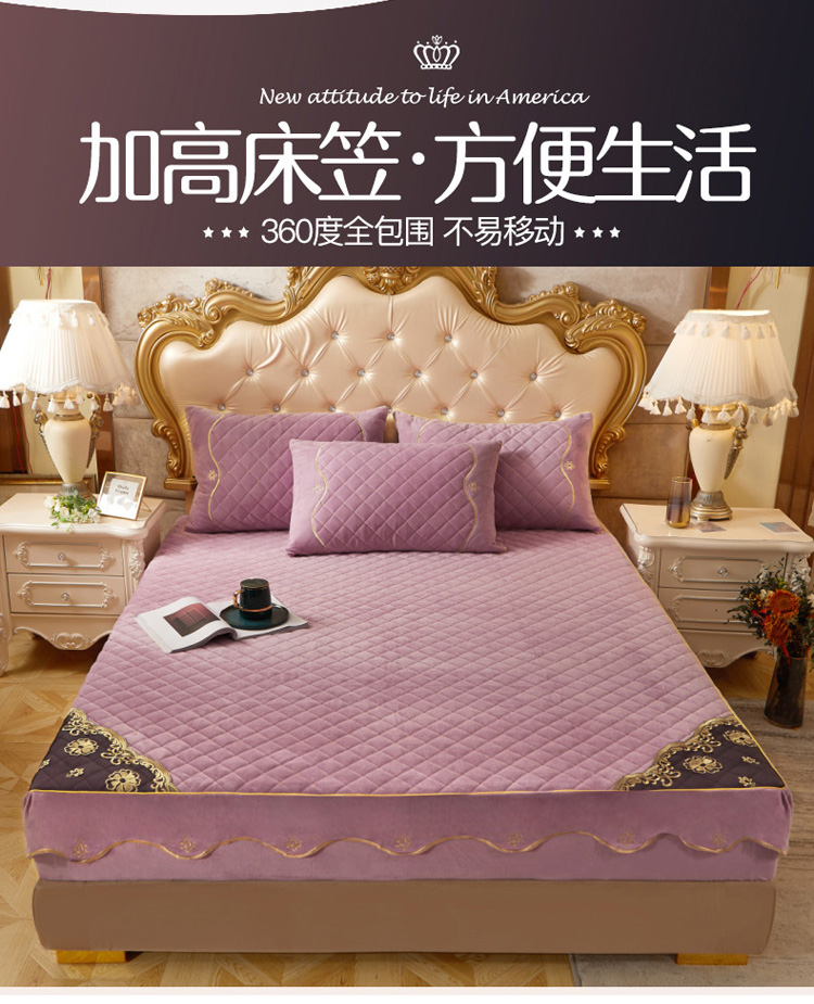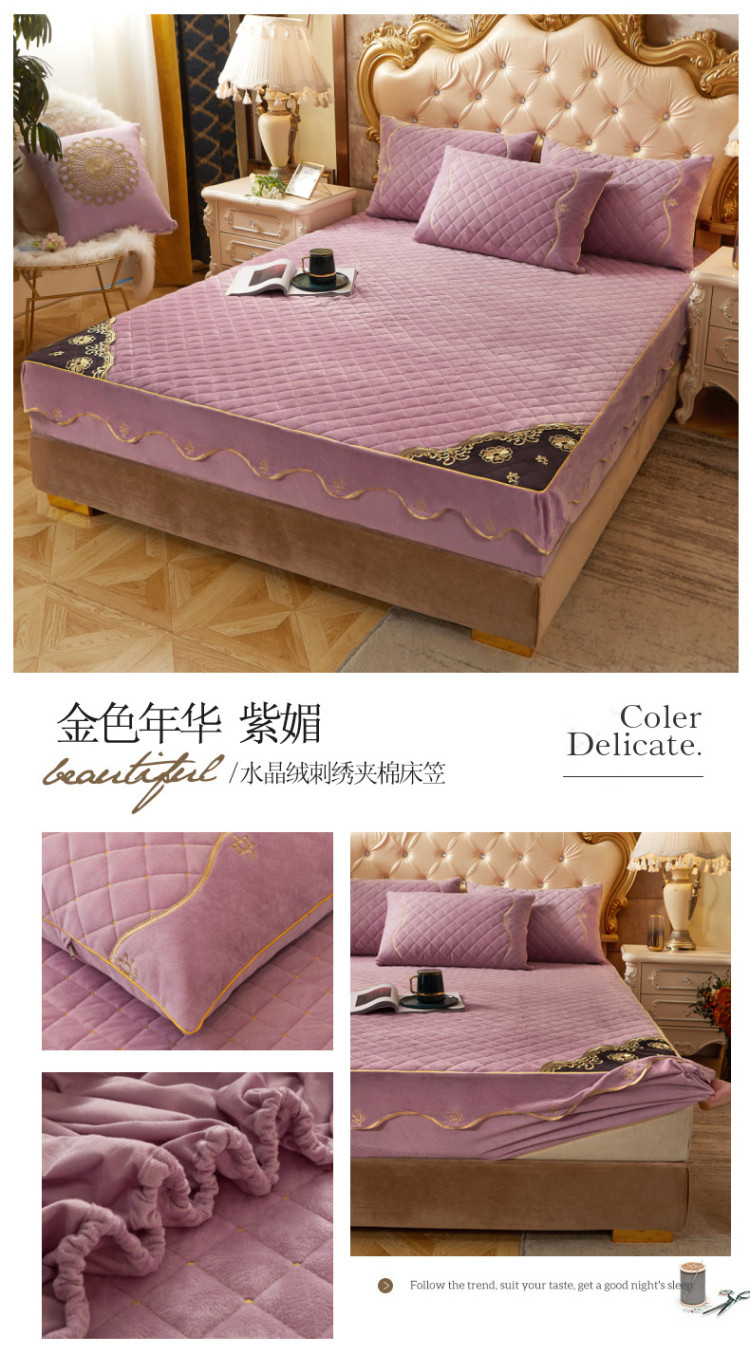 (总)菊上2021新款加厚水晶绒单床笠金色年华系列