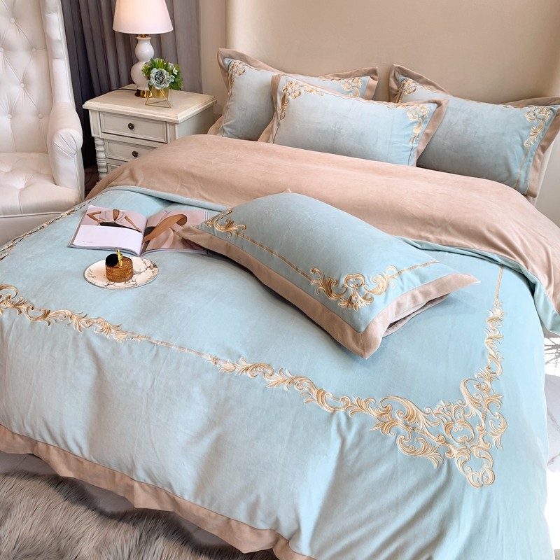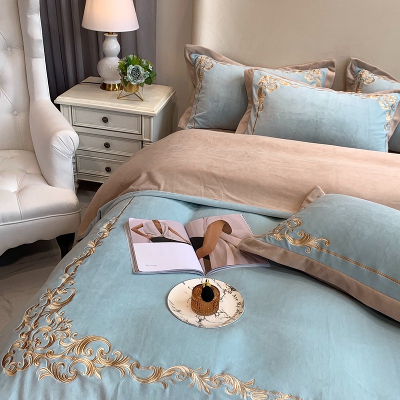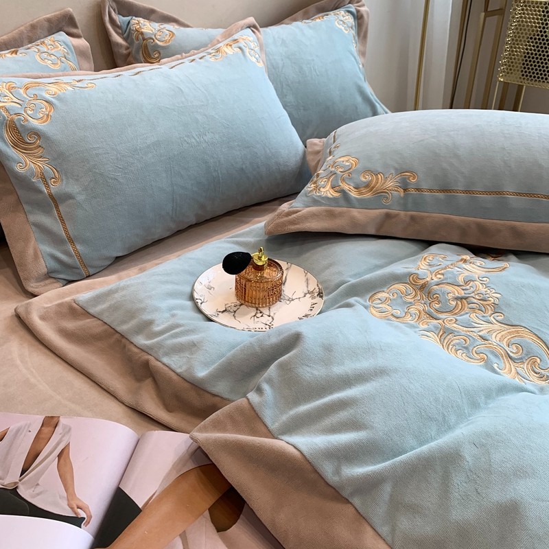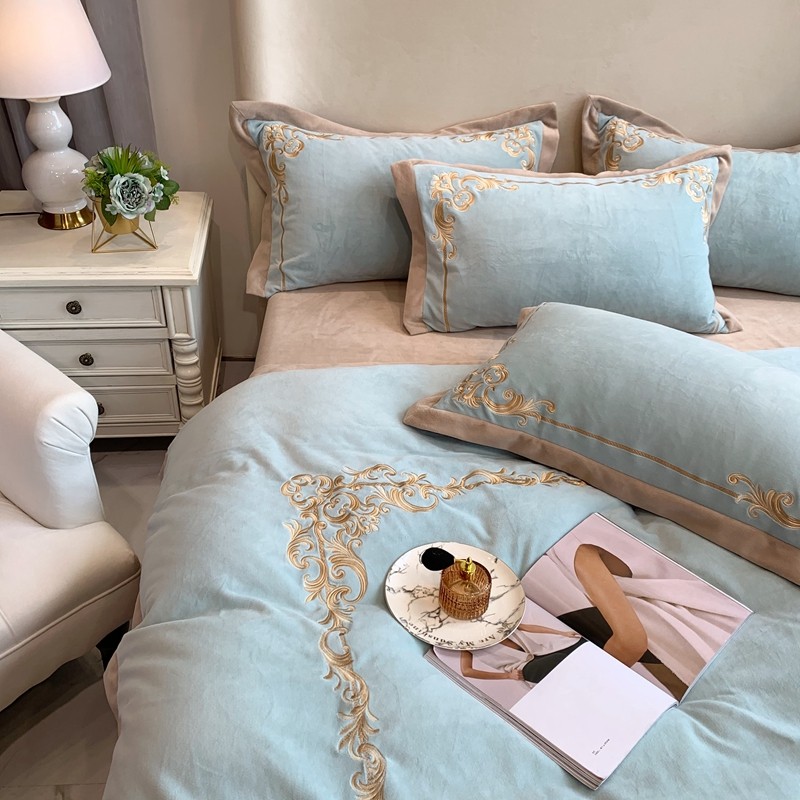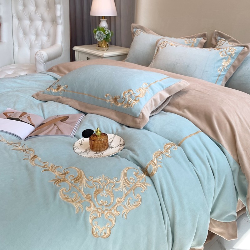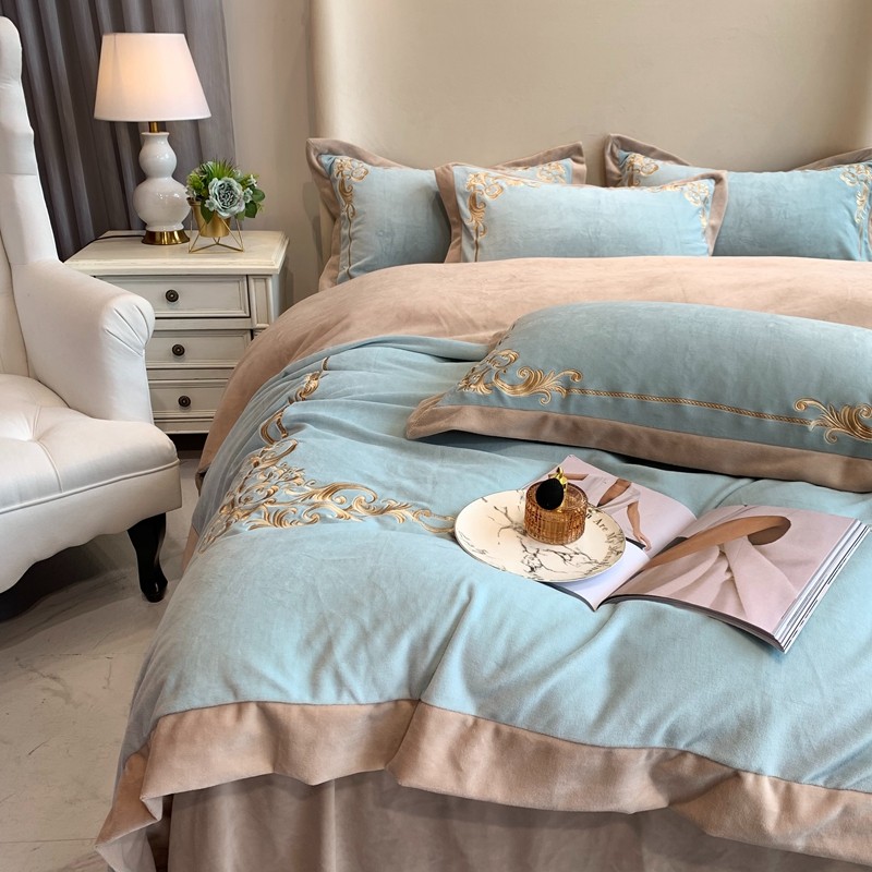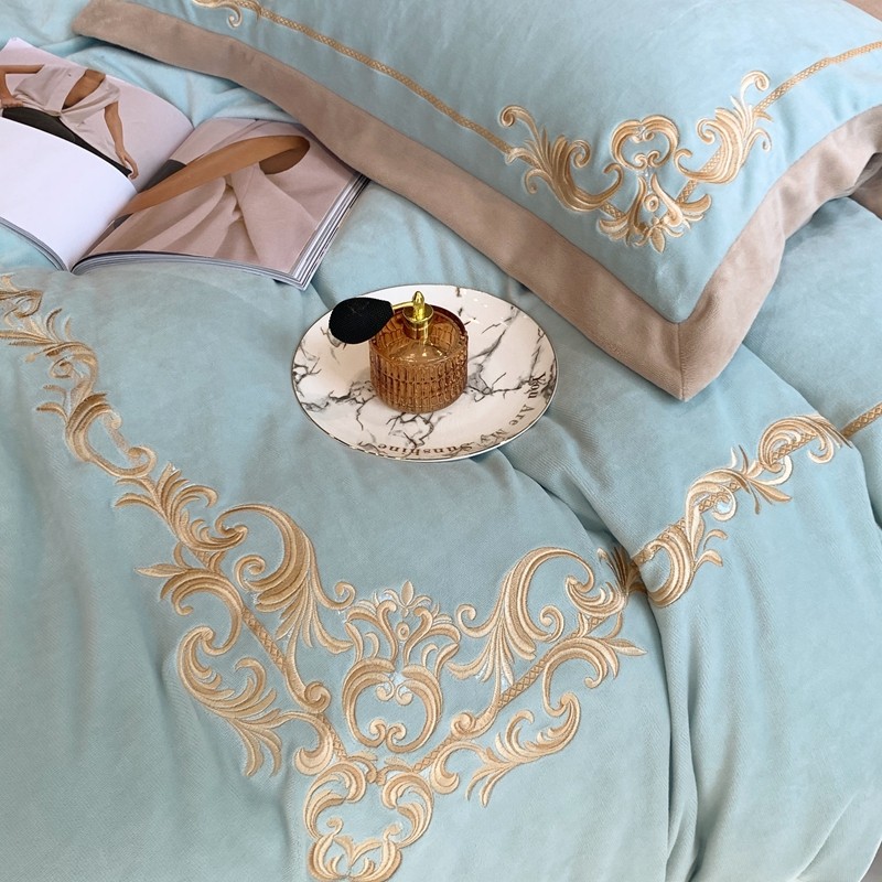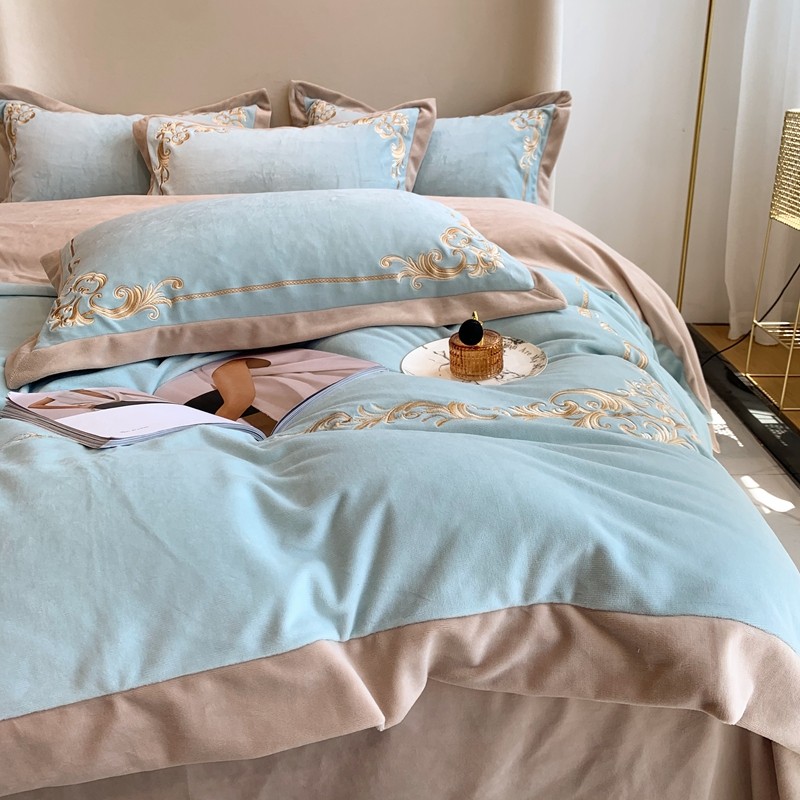 商品名称:馨蕊家居 2021新款秋冬轻奢煦暖绒四件套 巴比伦-湖水蓝