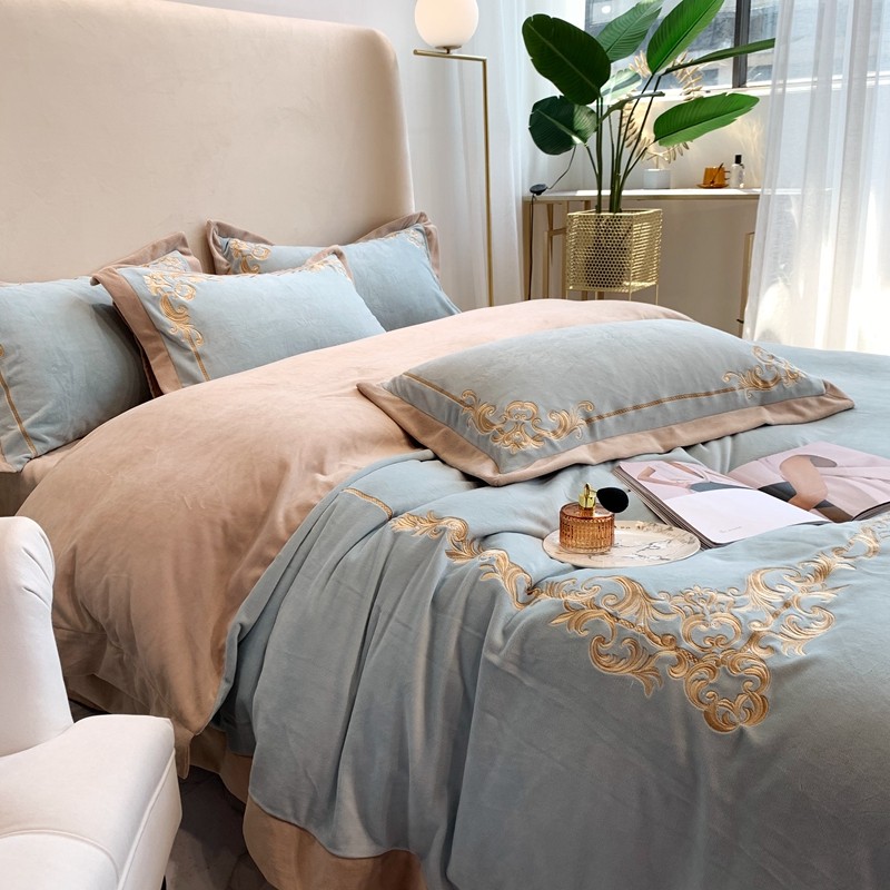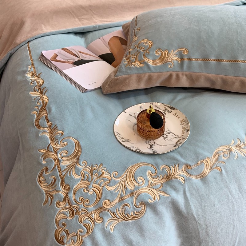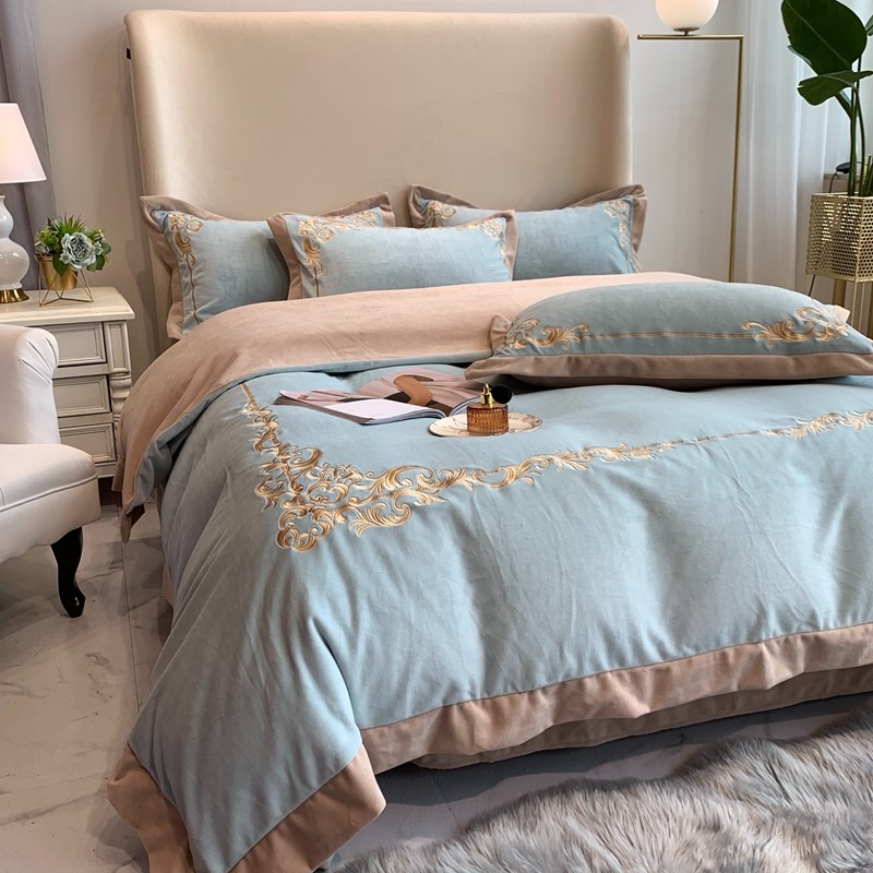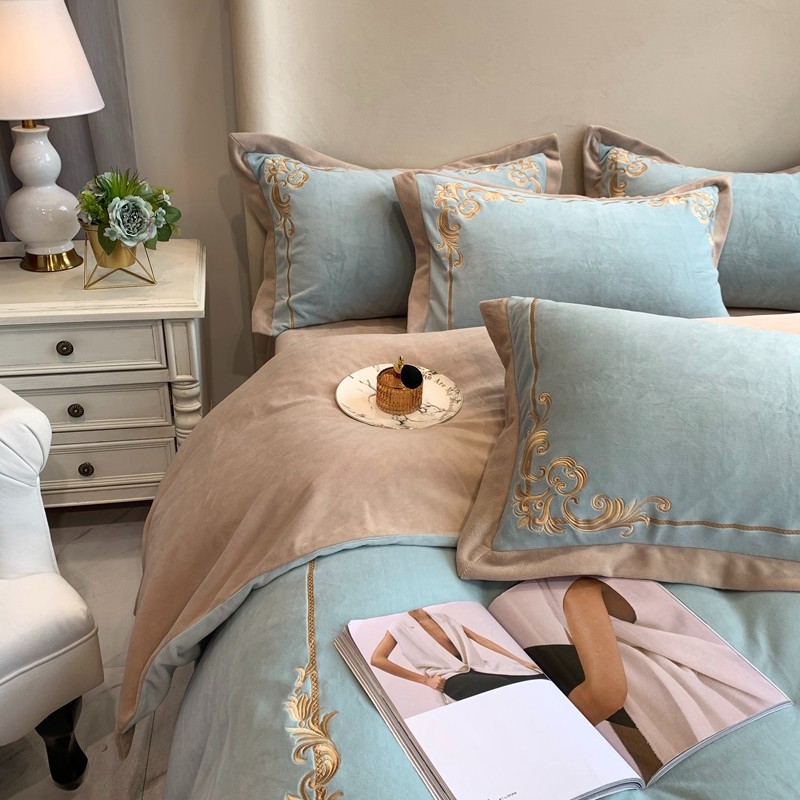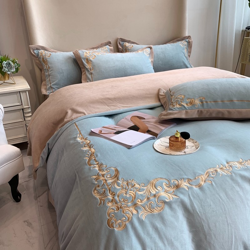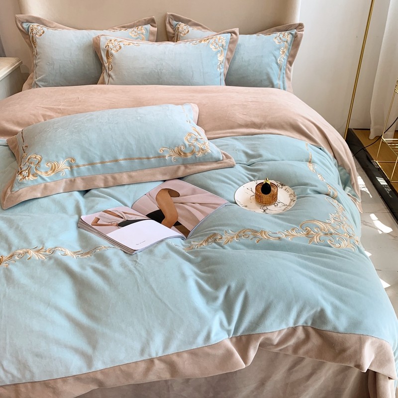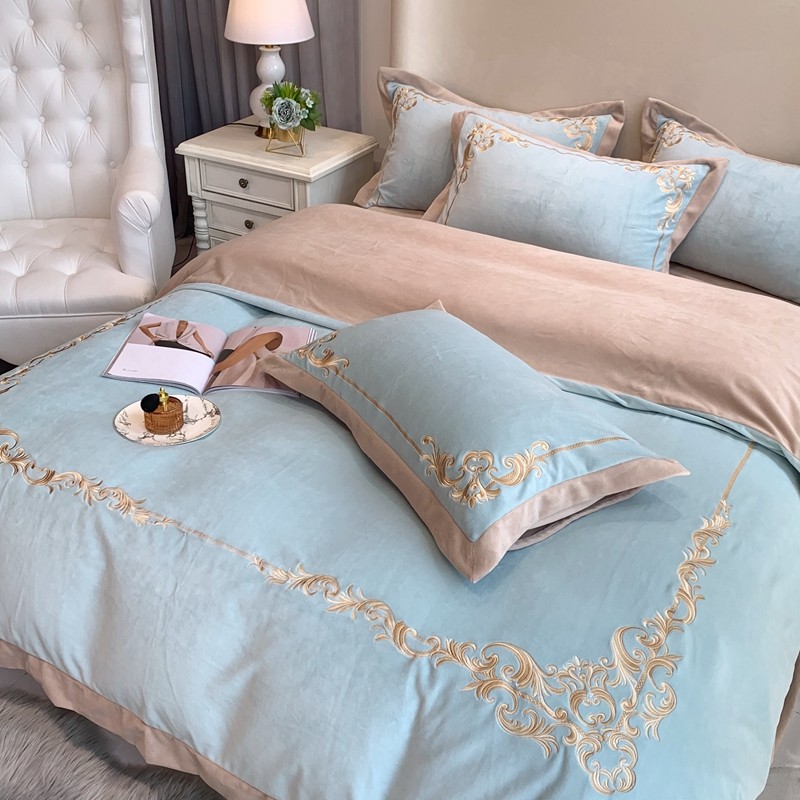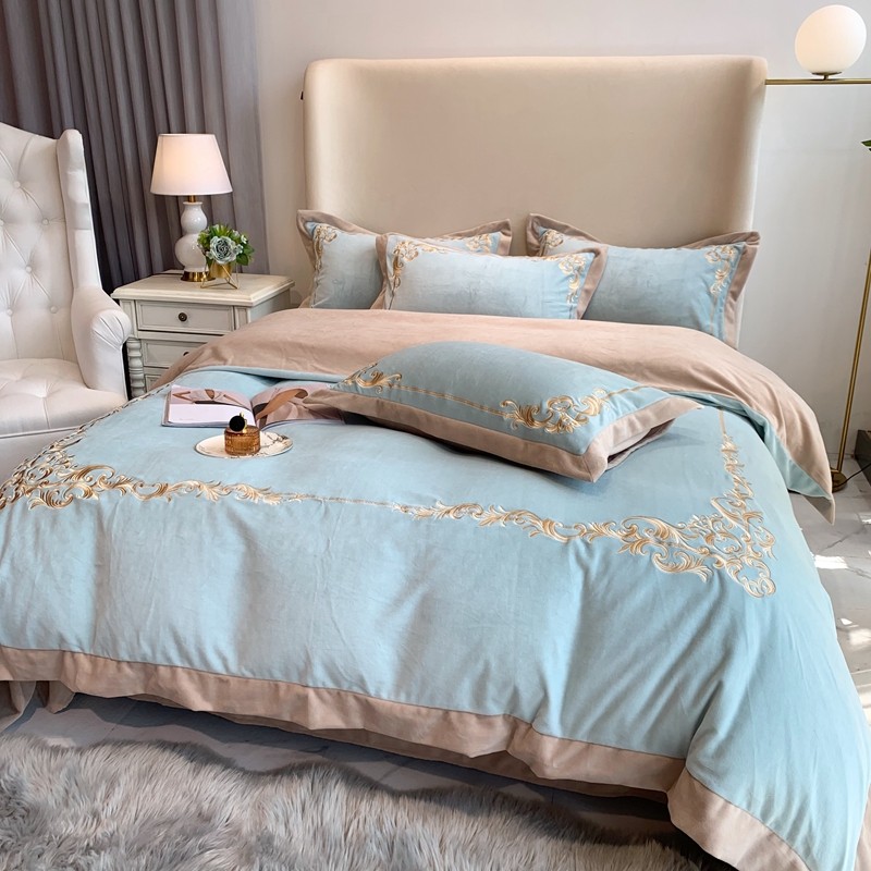 商品名称:馨蕊家居 2021新款秋冬轻奢煦暖绒四件套 巴比伦-湖水蓝