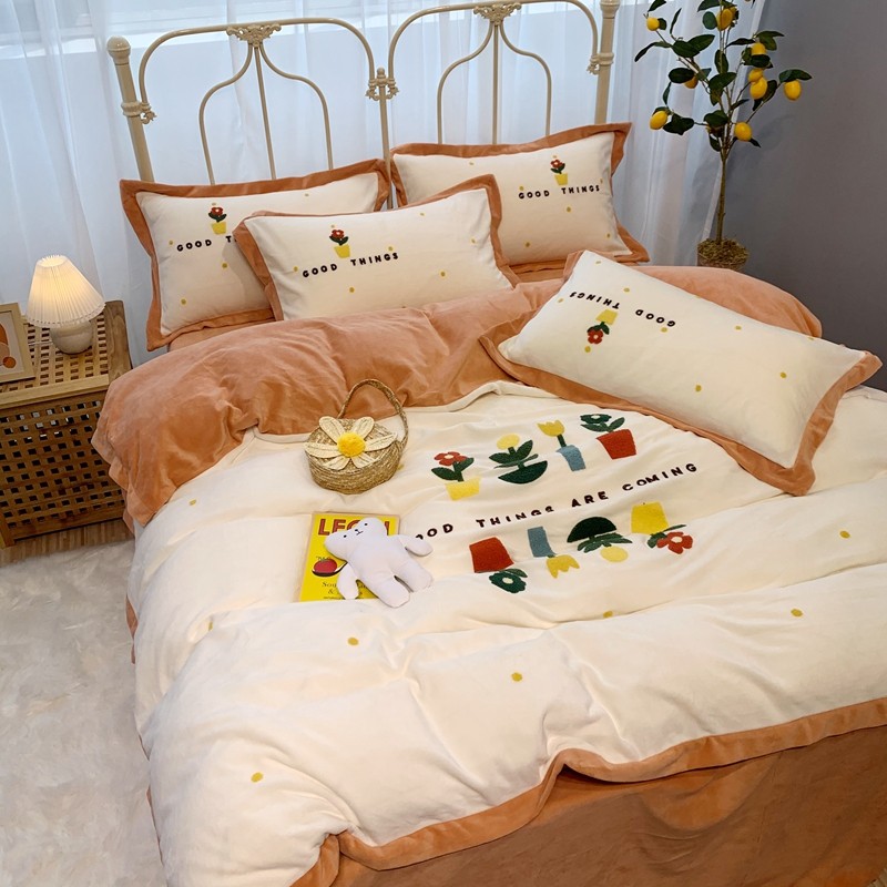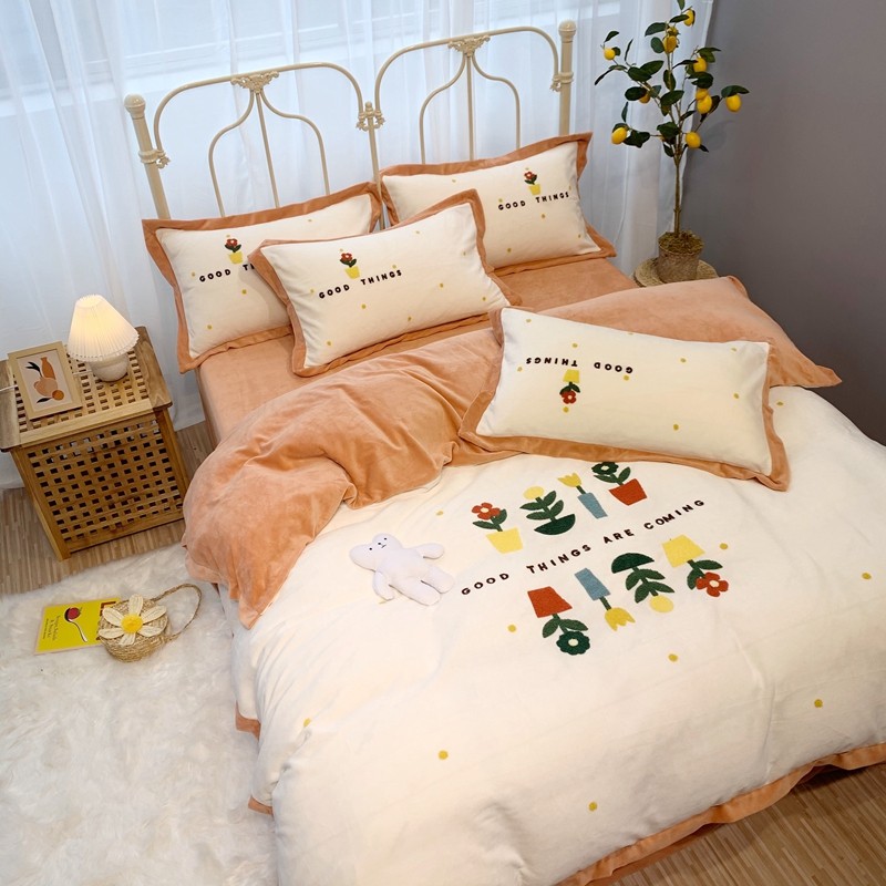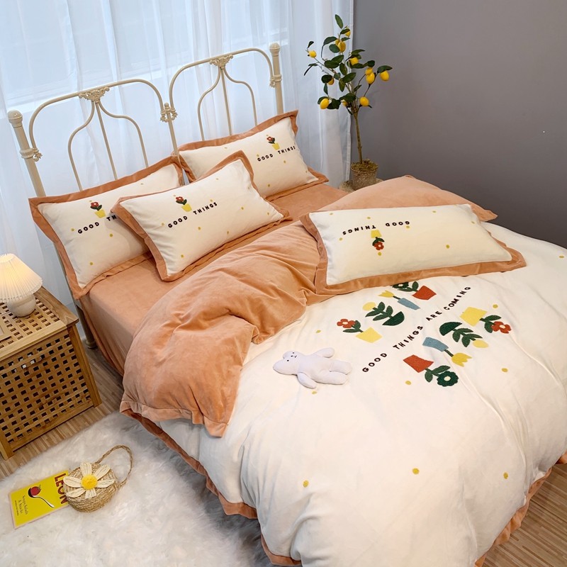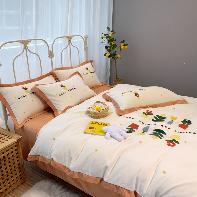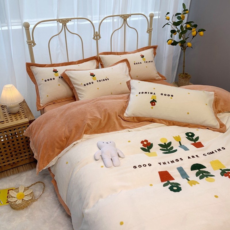 商品名称:馨蕊家居 2021新款秋冬轻奢煦暖绒四件套 蜜可-米白