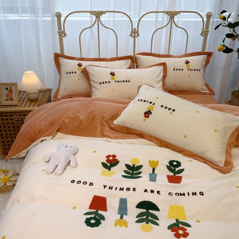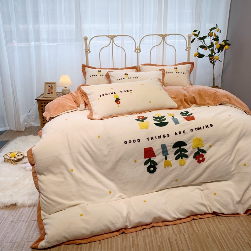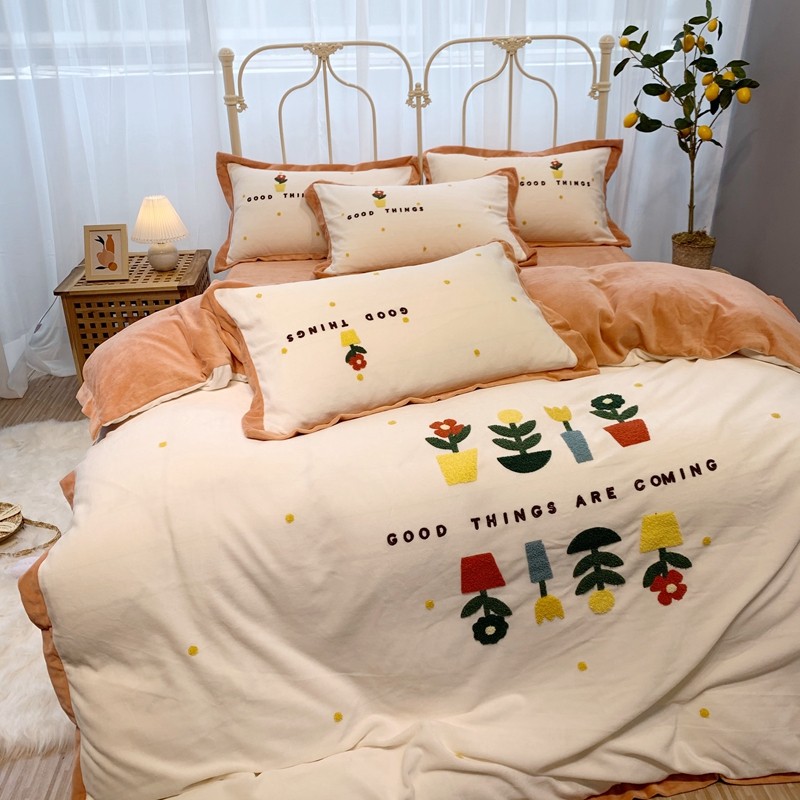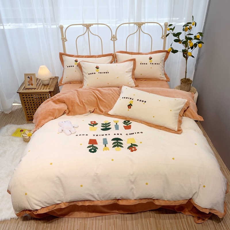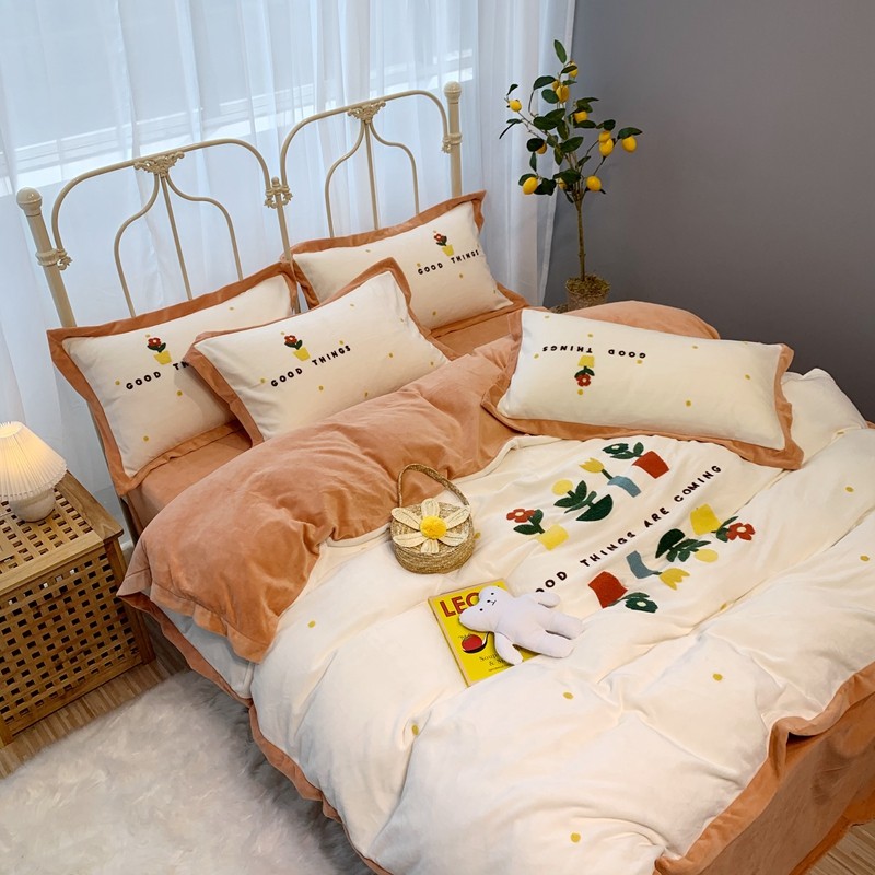 商品名称:馨蕊家居 2021新款秋冬轻奢煦暖绒四件套 蜜可-米白