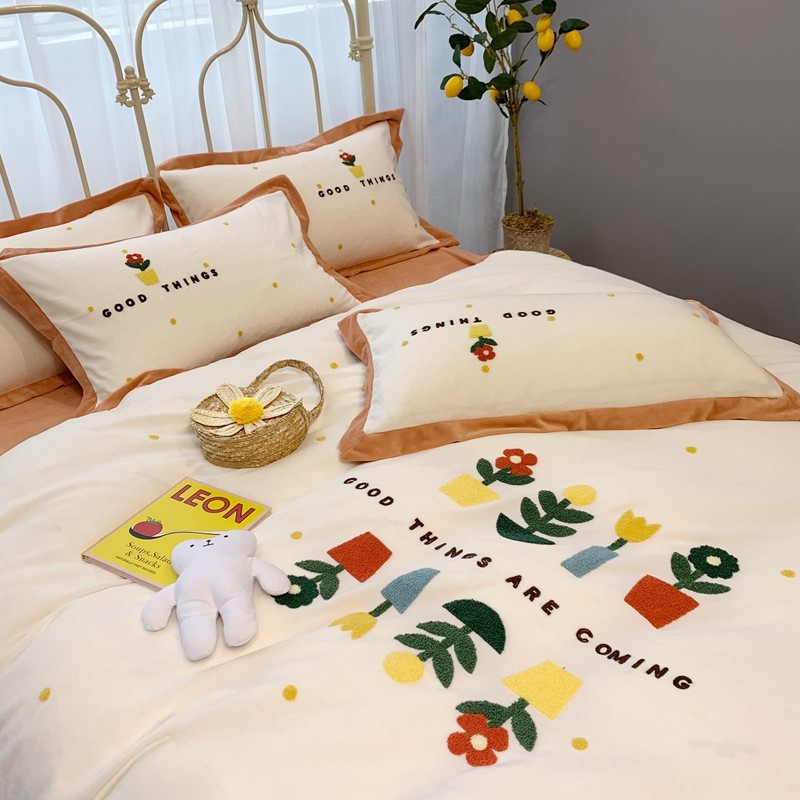 馨蕊家居 2021新款秋冬轻奢煦暖绒四件套 蜜可-米白