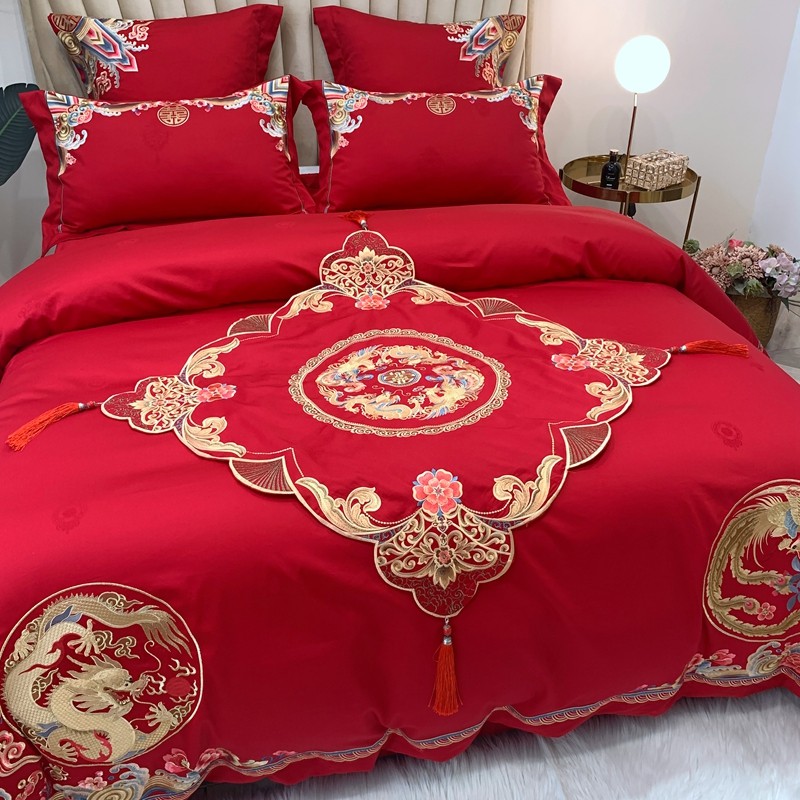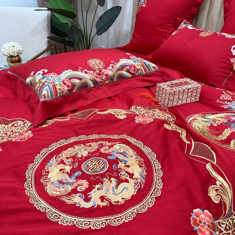 馨蕊家居 2021新款100支高端婚庆四件套 龙凤奇缘